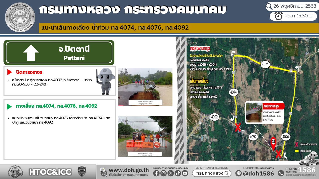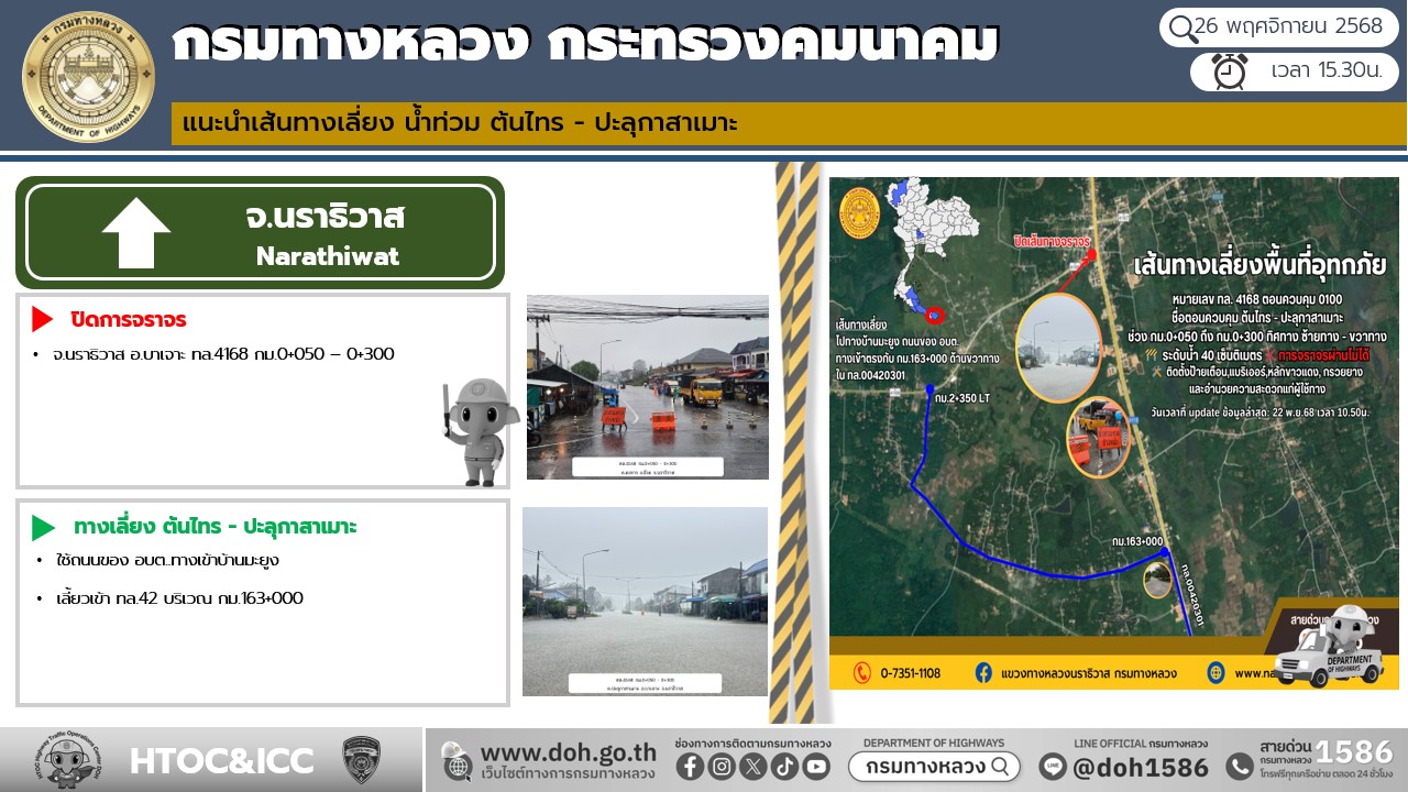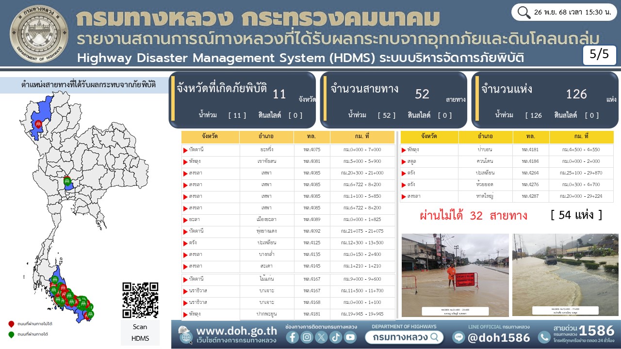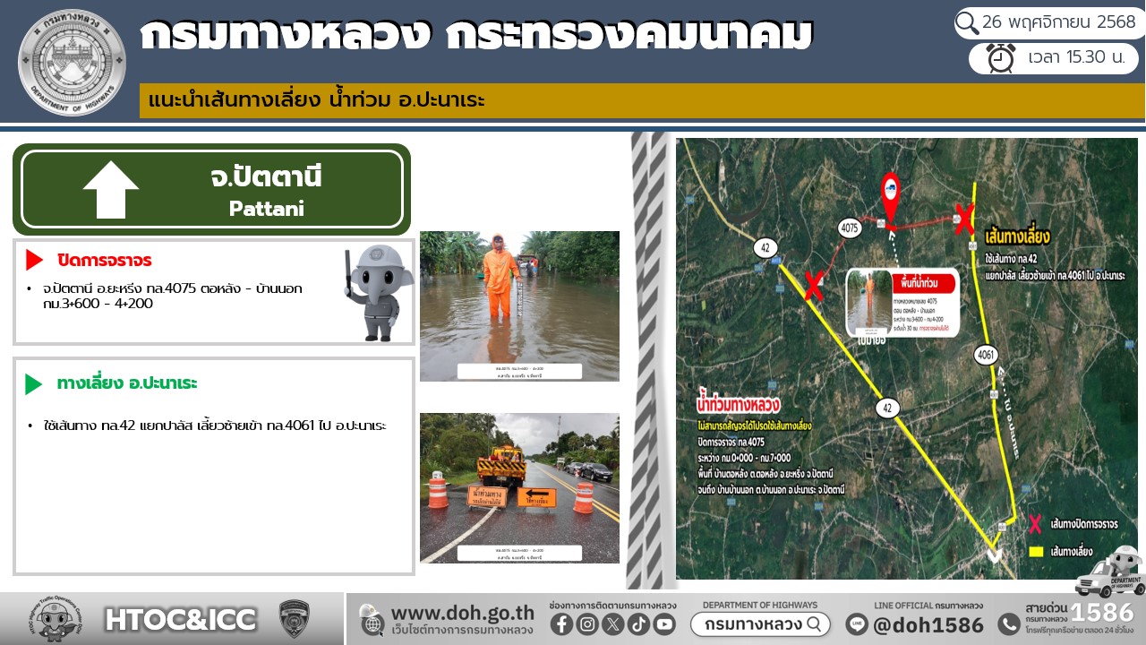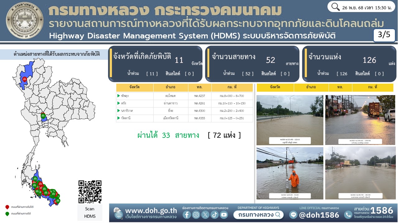 กรมทางหลวงขอรายงานสถานการณ์ น้ำท่วม ในโครงข่ายทางหลวง