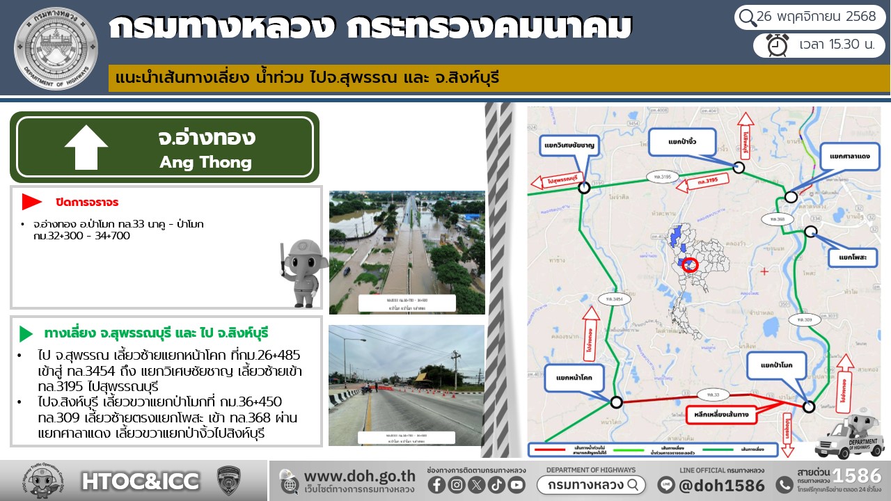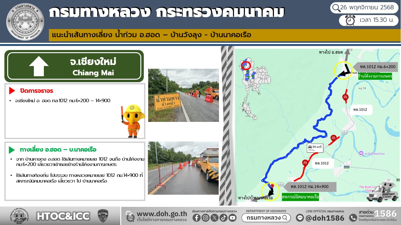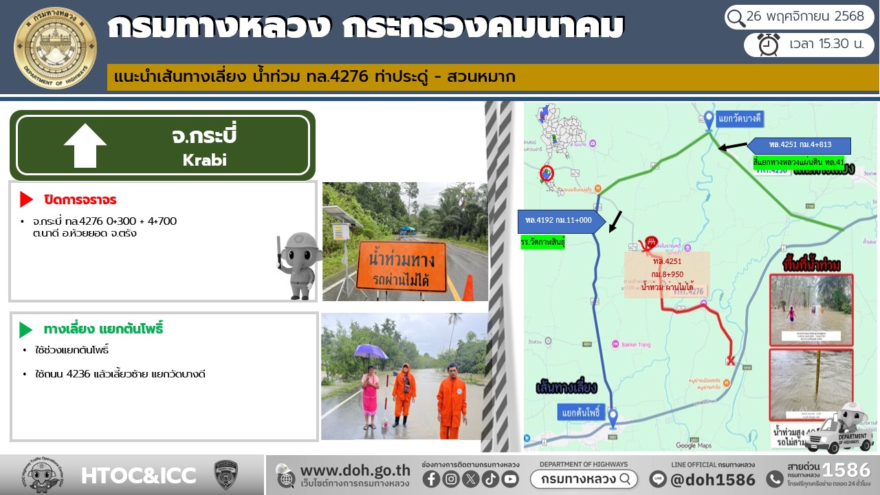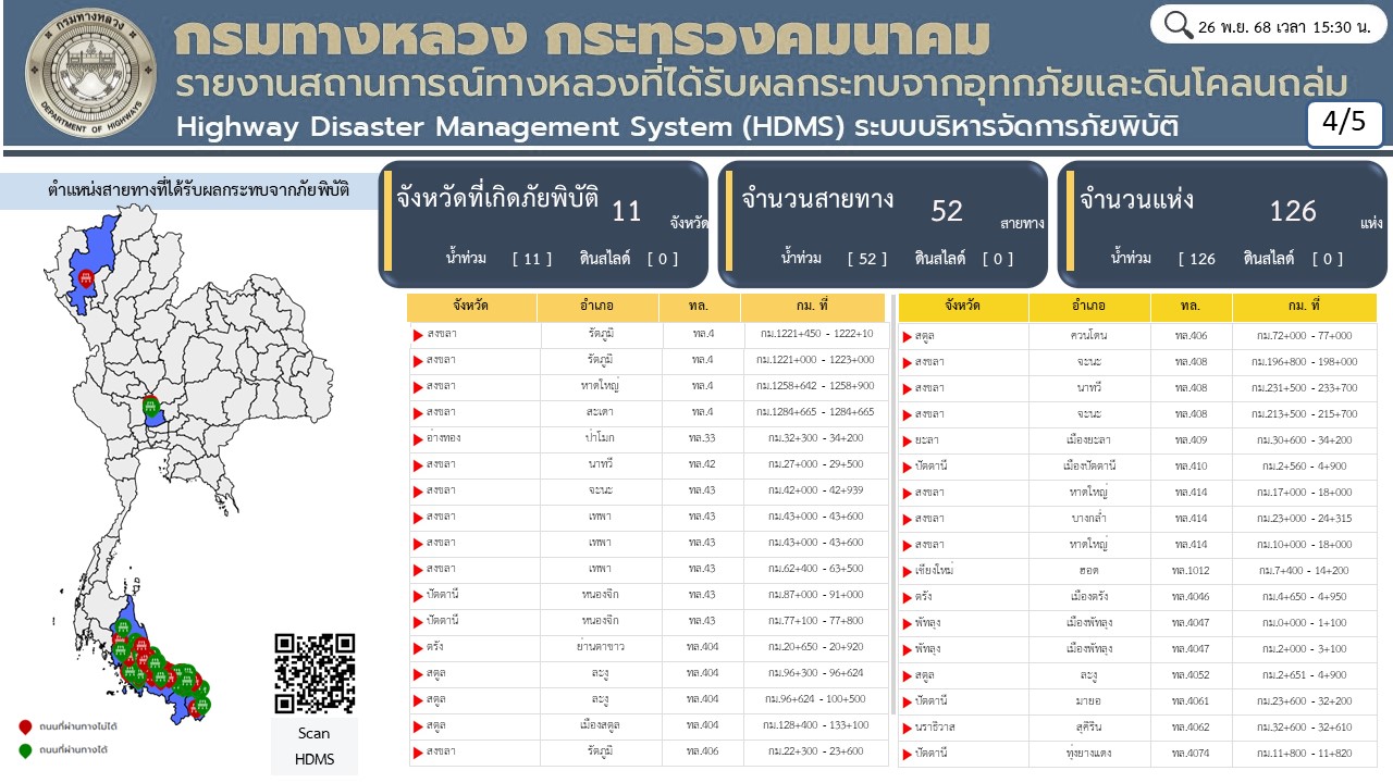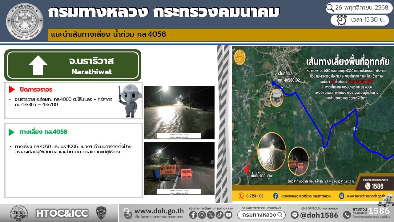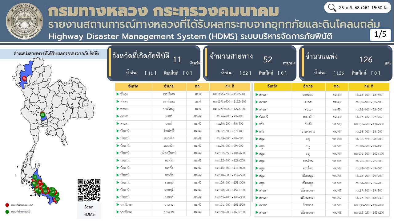 กรมทางหลวงขอรายงานสถานการณ์ น้ำท่วม ในโครงข่ายทางหลวง