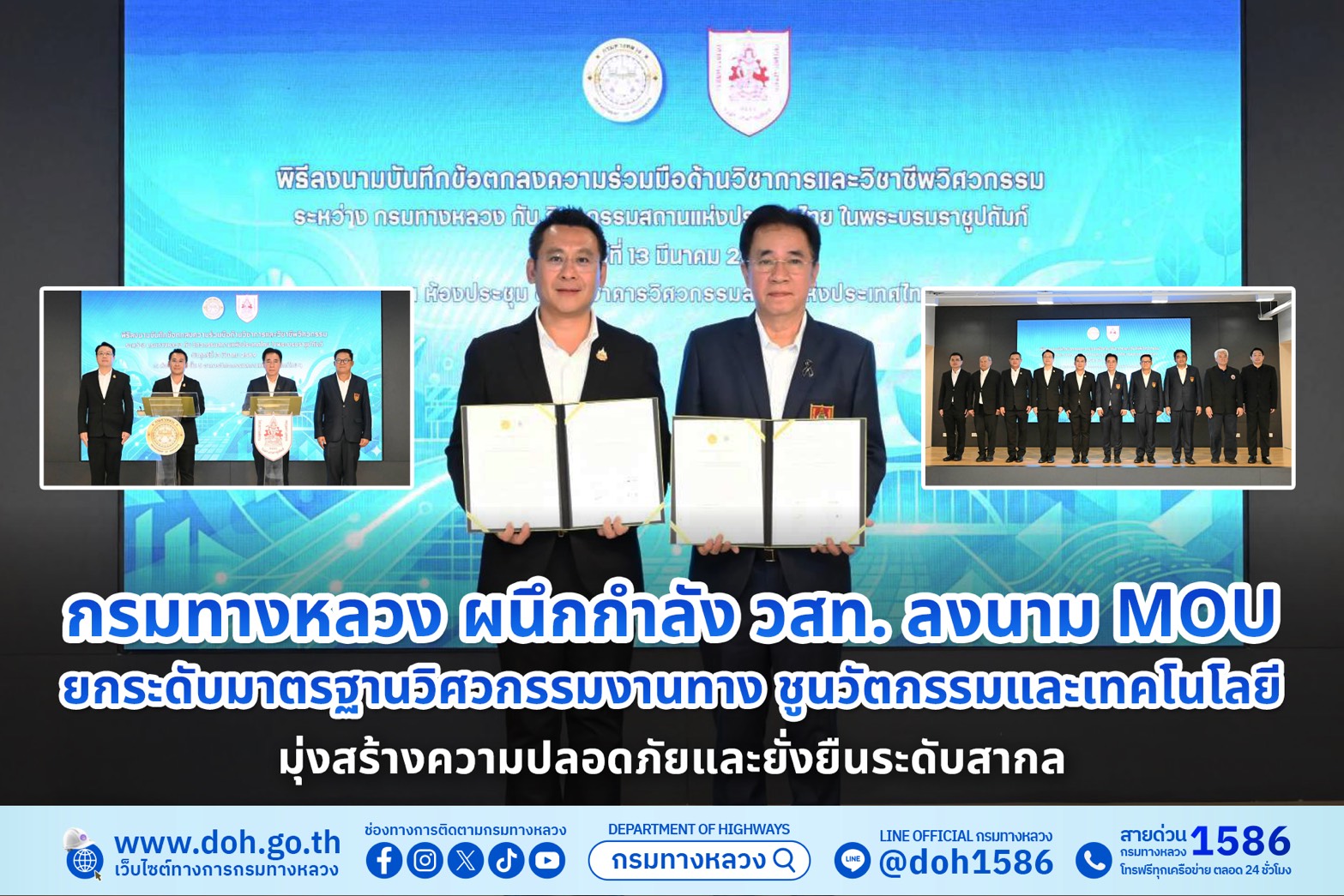 กรมทางหลวง ผนึกกำลัง วสท. ลงนาม MOU ยกระดับมาตรฐานวิศวกรรมงานทาง ชูนวัตกรรมและเทคโนโลยี มุ่งสร้างความปลอดภัยและยั่งยืนระดับสากล