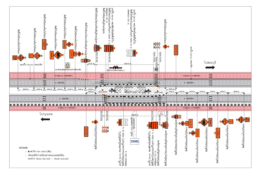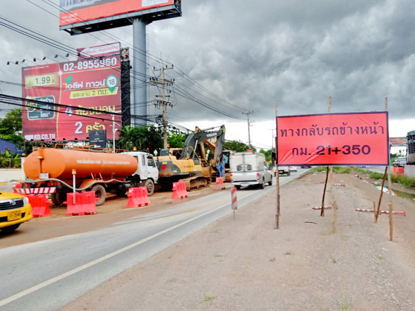 กรมทางหลวง แจ้งเบี่ยงการจราจรบนถนนพหลโยธิน ที่ กม. 55+567 ถึง 56+233 เพื่อทำการก่อสร้างตอม่อสะพาน