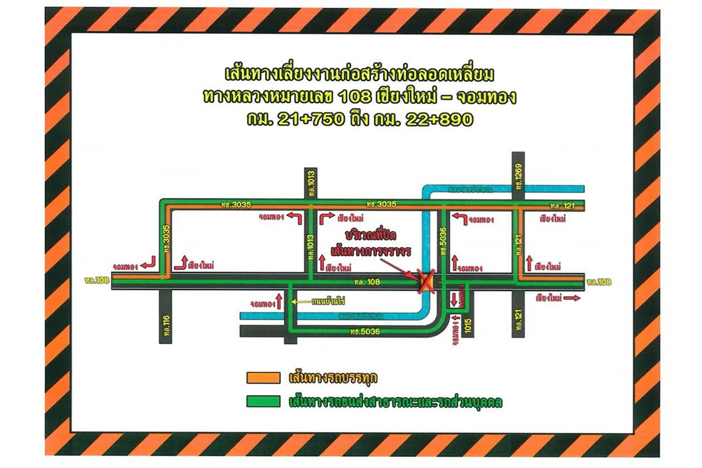 แจ้งปิดจราจรเส้นทางไปดอยอ่างขาง จ.เชียงใหม่ เพื่อดำเนินการก่อสร้างงานแก้ไขและป้องกันน้ำกัดเซาะ