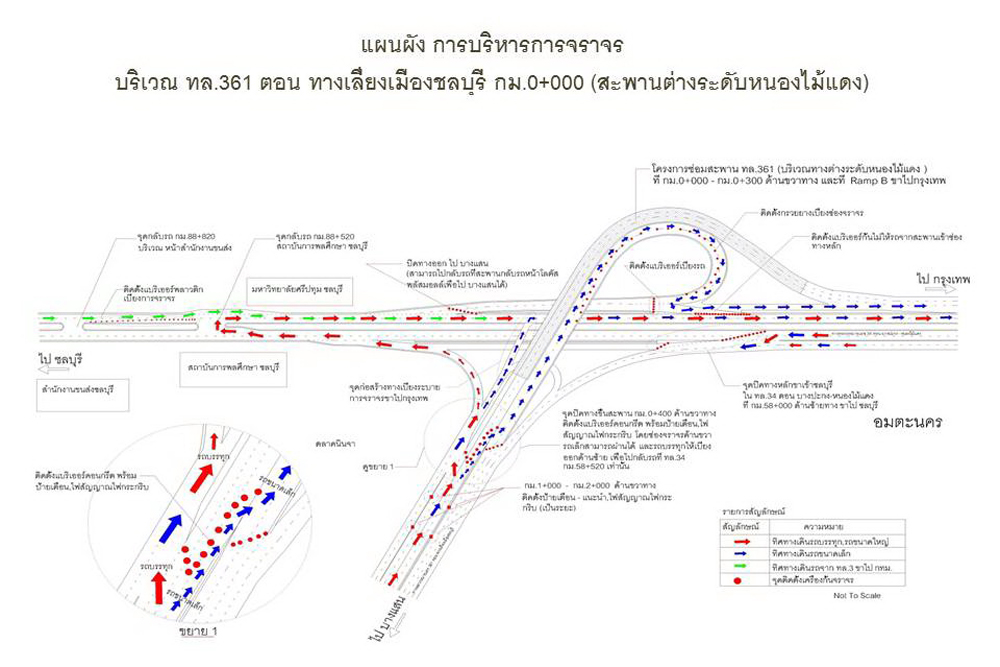 กรมทางหลวง แจ้งปิดสะพานหนองไม้แดงบนทางหลวงหมายเลข 361 จ.ชลบุรี เพื่อบูรณะซ่อมแซมสะพาน