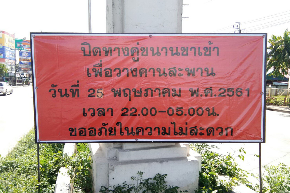 แจ้งปิดการจราจรบนทางหลวงหมายเลข 304 (ถนนรามอินทรา) ที่กม.12 เพื่อทำการติดตั้งคานสะพานฝั่งขาเข้า
