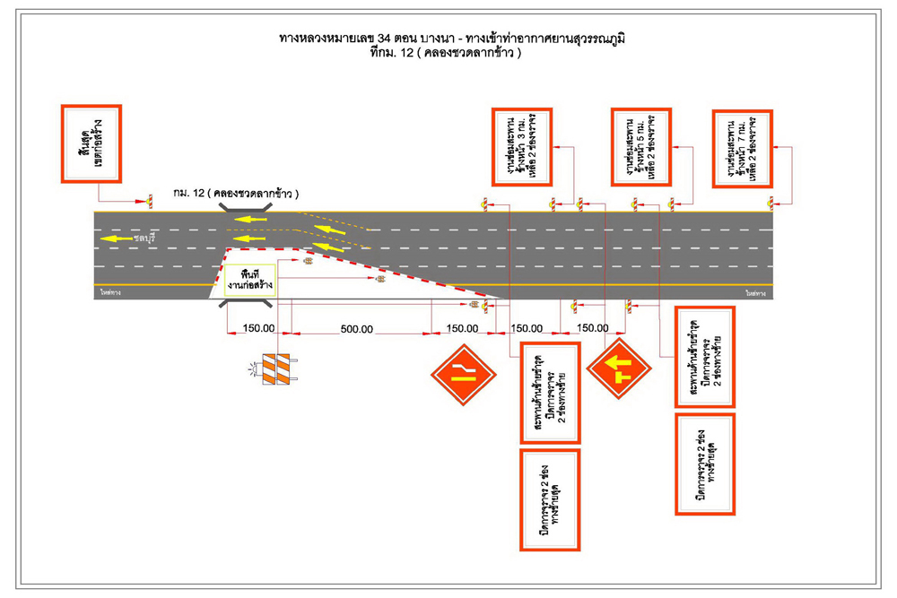 แจ้งเบี่ยงการจราจรเพื่อซ่อมสะพานคลองชวดลากข้าว ทล.34 กม.11+928 จ.สมุทรปราการ 2 สัปดาห์