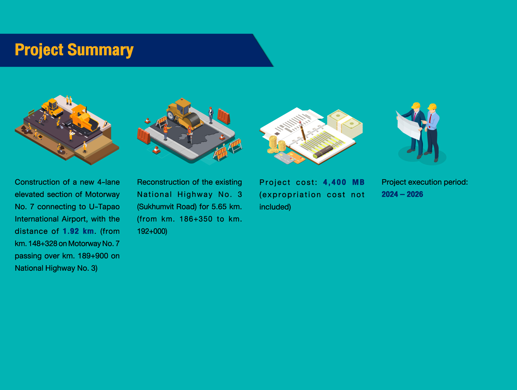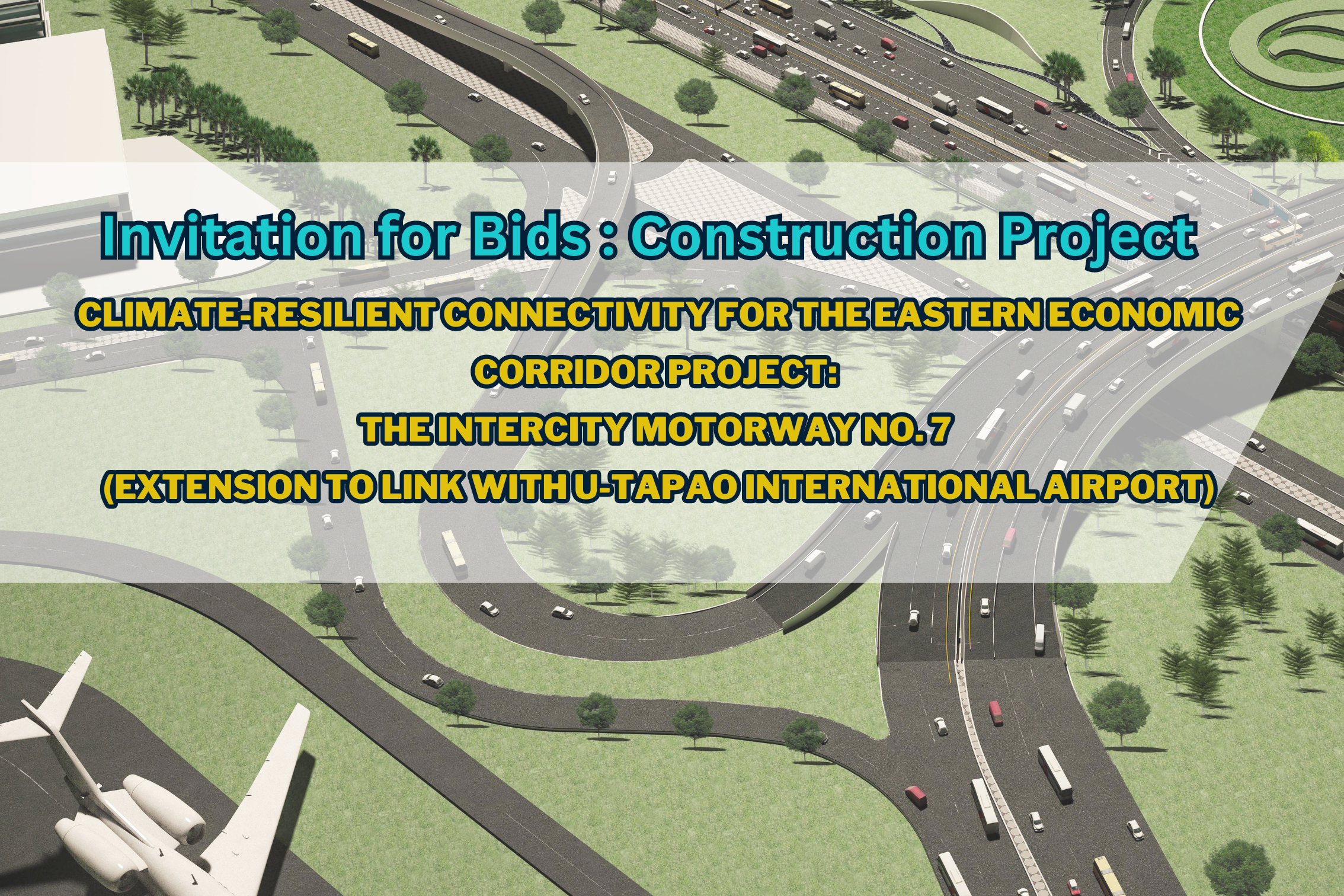 เชิญชวนยื่นข้อเสนอคัดเลือกเป็นที่ปรึกษา งานจ้างที่ปรึกษาควบคุมงานก่อสร้าง โครงการพัฒนาโครงข่ายทางหลวงเขตพัฒนาพิเศษภาคตะวันออก เพื่อรองรับการเปลี่ยนแปลงสภาพภูมิอากาศ ทางหลวงพิเศษระหว่างเมืองหมายเลข 7 ส่วนต่อขยายเชื่อมต่อสนามบินนานาชาติอู่ตะเภา