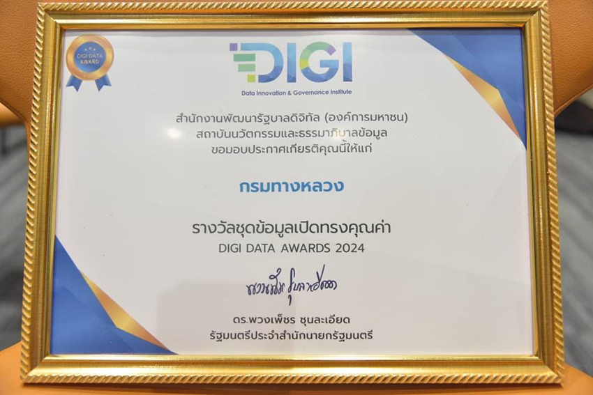 กรมทางหลวง ได้รับประกาศนียบัตรรางวัลข้อมูลเปิดภาครัฐ (Open Data Awards) ในฐานะชุดข้อมูลเปิดบนศูนย์กลางข้อมูลเปิดภาครัฐ (Data.go.th) ของกรมทางหลวงได้รับความนิยมจากประชาชน และมีปริมาณการเข้าใช้งานเป็นจำนวนมาก