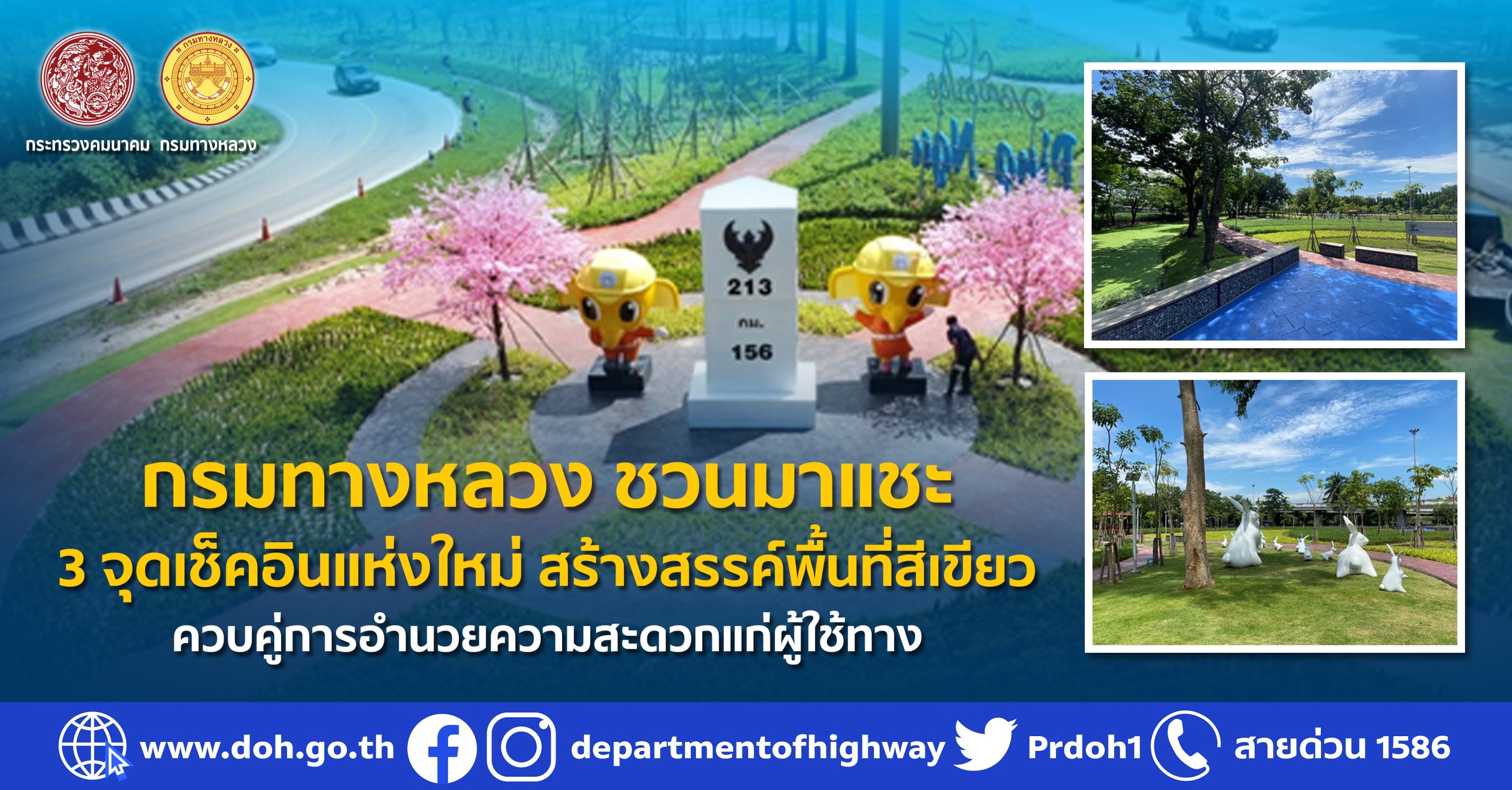 กรมทางหลวง ชวนมาแชะ 3 จุดเช็คอินแห่งใหม่ สร้างสรรค์พื้นที่สีเขียวควบคู่การอำนวยความสะดวกแก่ผู้ใช้ทาง
