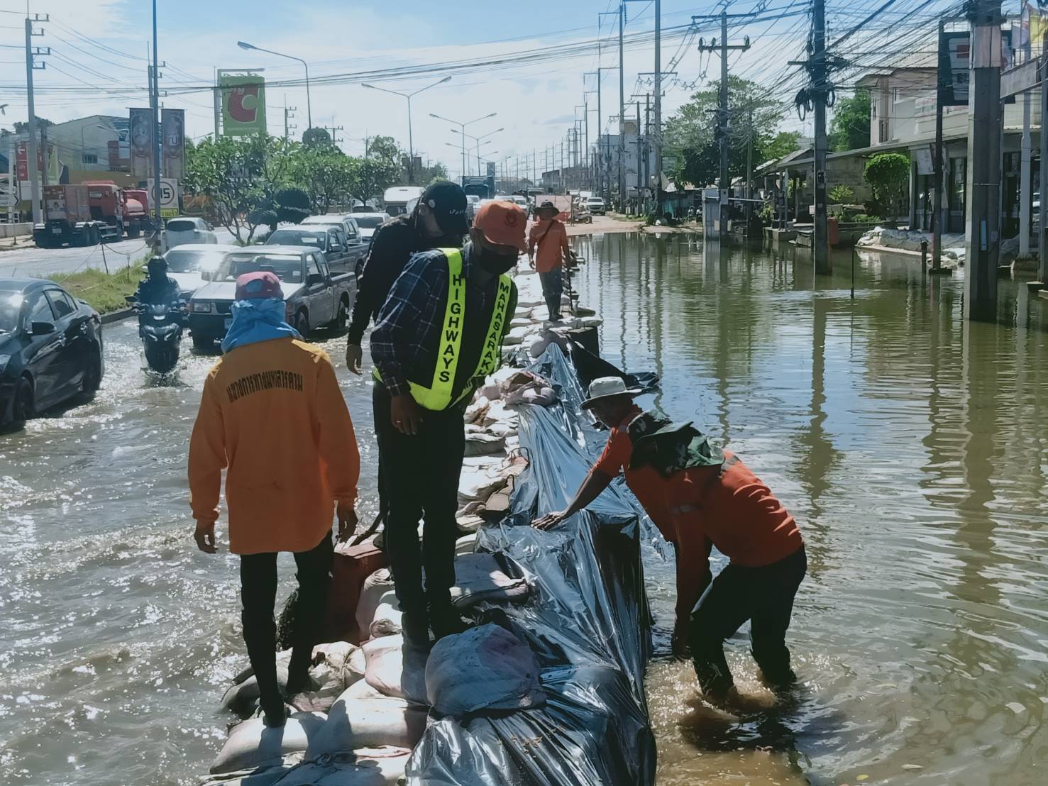 กรมทางหลวงระดมเจ้าหน้าที่เร่งกู้เส้นทางนำ้ท่วมใน จว. กาฬสินธุ์ ตลอด 24 ชม.