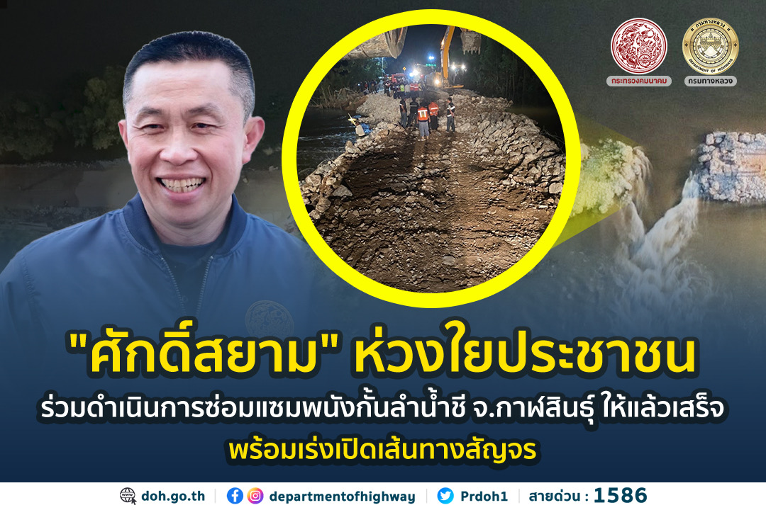 ศักดิ์สยาม" ห่วงใยประชาชน สั่งกรมทางหลวงระดมกำลังกู้สถานการณ์น้ำท่วม ร่วมดำเนินการซ่อมแซมพนังกั้นลำน้ำชี จ.กาฬสินธุ์ให้แล้วเสร็จ พร้อมเร่งเปิดเส้นทางสัญจร