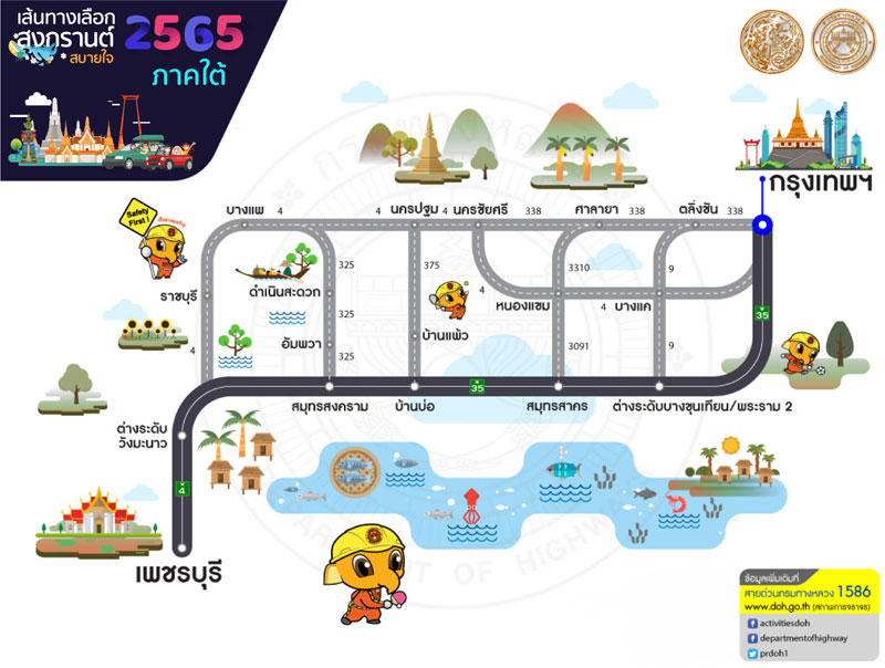 กรมทางหลวง แนะนำเส้นทางเลือกจากกรุงเทพฯสู่ภูมิภาคต่างๆ ช่วงเทศกาลสงกรานต์ 2565 เพื่อให้ผู้ใช้ทางได้รับความสะดวกรวดเร็วในการเดินทาง สอบถามโทร 1586