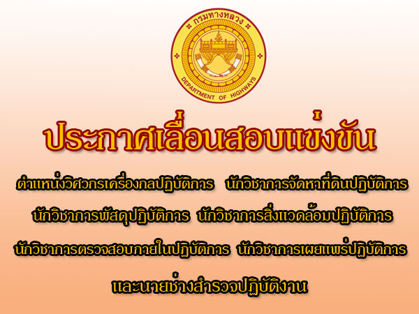 ประกาศเลื่อนกำหนดการสอบแข่งขันเพื่อวัดความเหมาะสมกับตำแหน่ง ในกรมทางหลวง