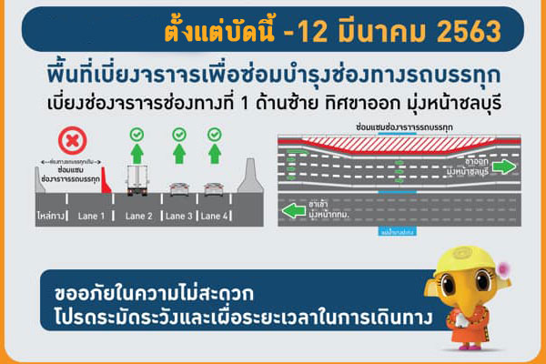 กรมทางหลวง แจ้งเบี่ยงการจราจรโครงการก่อสร้างปรับปรุงเพิ่มช่องจราจร ช่วงทางแยกต่างระดับหนองขาม – ทางแยกต่างระดับโป่ง บนทางหลวงพิเศษหมายเลข 7