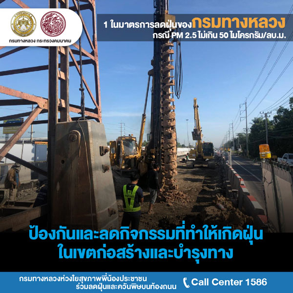 กรมทางหลวงเดินหน้าแก้ไขปัญหามลพิษ PM 2.5ขานรับวาระแห่งชาติ กรมทางหลวงสั่งหน่วยงานในสังกัดเร่งแก้ไขปัญหา PM 2.5 งัดมาตรการเข้มงวดงานก่อสร้าง-บำรุงทางให้ก่อฝุ่นน้อยที่สุด ติดตั้งเครื่องปล่อยละอองน้ำจับฝุ่น 15 แห่ง และจับมือหลายหน่วยงานเข้มใช้รถควันดำ จอดแช่ ลดค่าธรรมเนียมผ่านทาง M-Pass และ Easy Pass จูงใจใช้เพิ่มลดปัญหารถติดหน้าด่านก่อมลพิษ