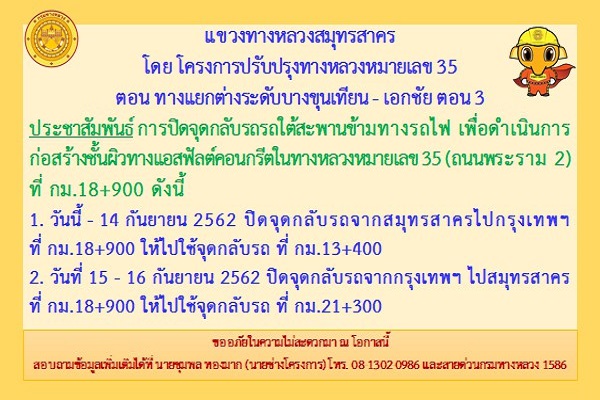 กรมทางหลวง แจ้งปิดการจราจร 2 จุด บนถนนพระราม 2 แนะประชาชนหลีกเลี่ยงช่วงวัน เวลา ดังกล่าว