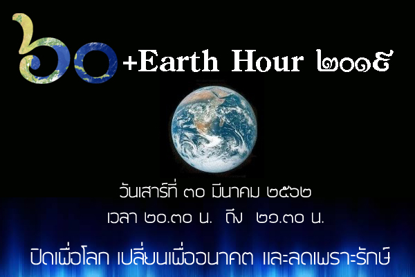 กิจกรรม "ปิดไฟ 1 ชั่วโมง เพื่อลดโลกร้อน (๖๐+Earth Hour ๒๐๑๙)" วันเสาร์ที่ 30 มีนาคม 2562