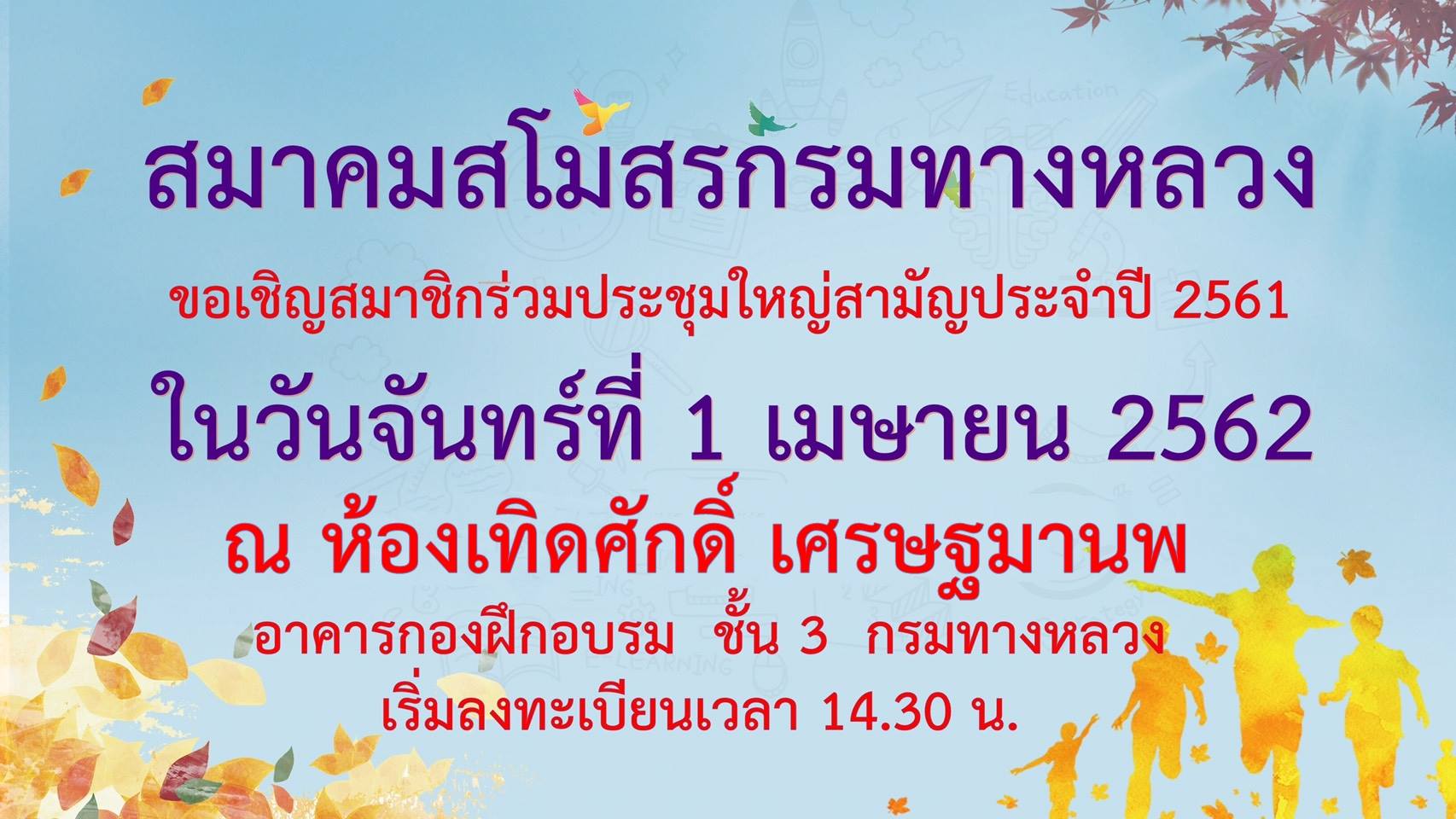 สมาคมสโมสรกรมทางหลวง ขอเชิญสมาชิกร่วมประชุมใหญ่สามัญประจำปี 2561