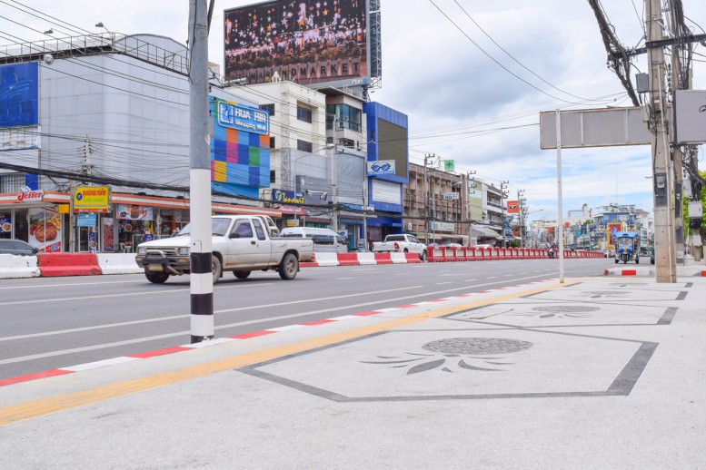 กรมทางหลวงปรับปรุงทางเท้าเมืองหัวหิน เป็นลายสับประรด ลายทุเรียน และเรือใบ พร้อมติดตั้งเสากันรถและทางลาด