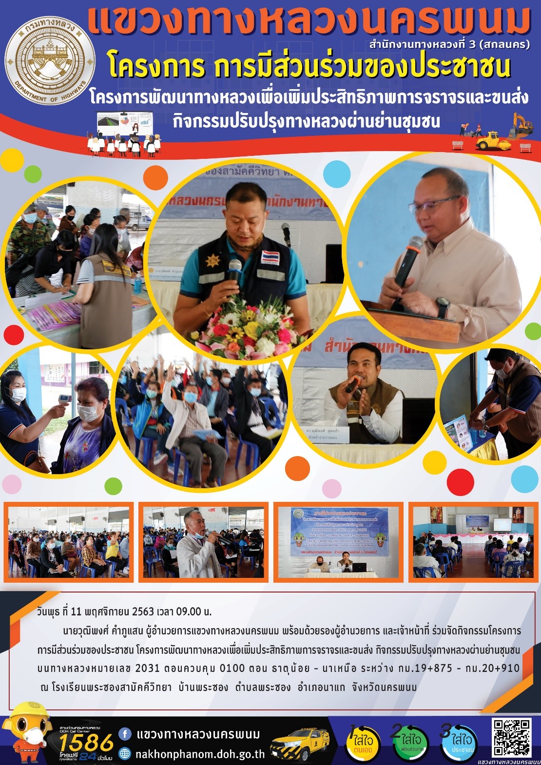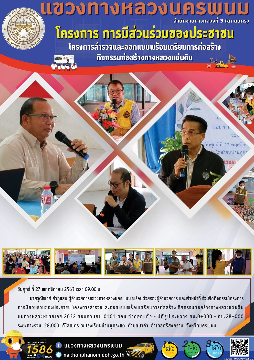 แขวงทางหลวงนครพนม จัดกิจกรรมโครงการ การมีส่วนร่วมของประชาชน โครงการสำรวจและออกแบบพร้อมเตรียมการก่อสร้าง กิจกรรมก่อสร้างทางหลวงแผ่นดิน