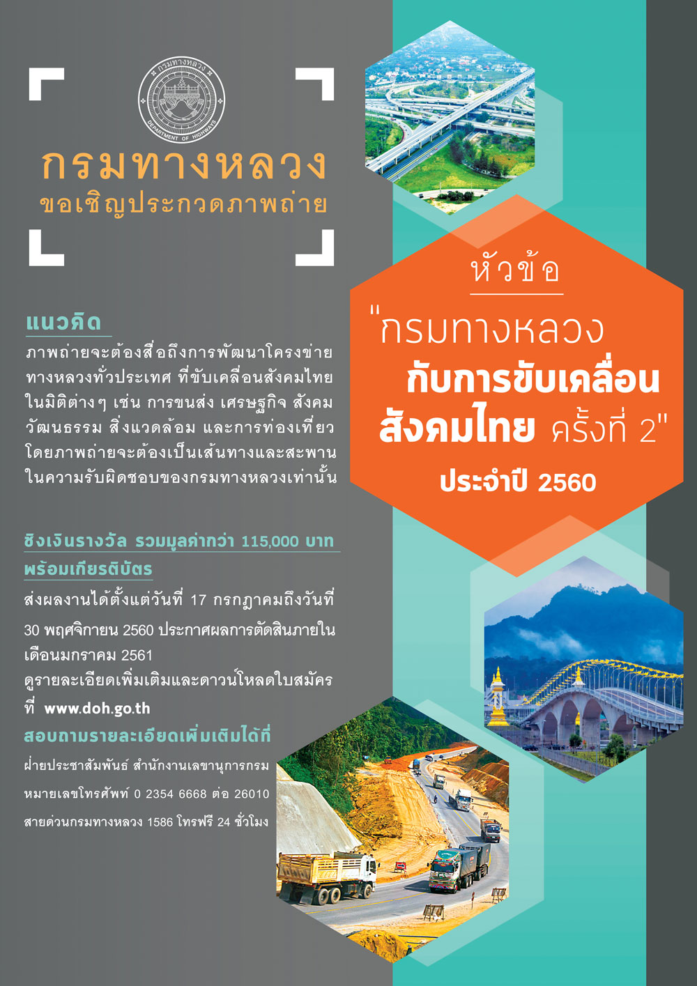 โครงการประกวดภาพถ่ายกรมทางหลวงหัวข้อ “กรมทางหลวงกับการขับเคลื่อนสังคมไทย” ครั้งที่ 2 ประจำปี 2560