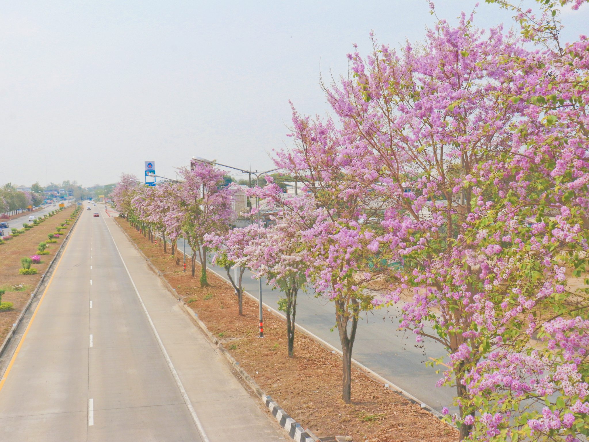 กรมทางหลวงเปิดพิกัดใหม่ “ถนนสายดอกตะแบก” สีชมพูสุดโรแมนติก บนถนนพหลโยธิน