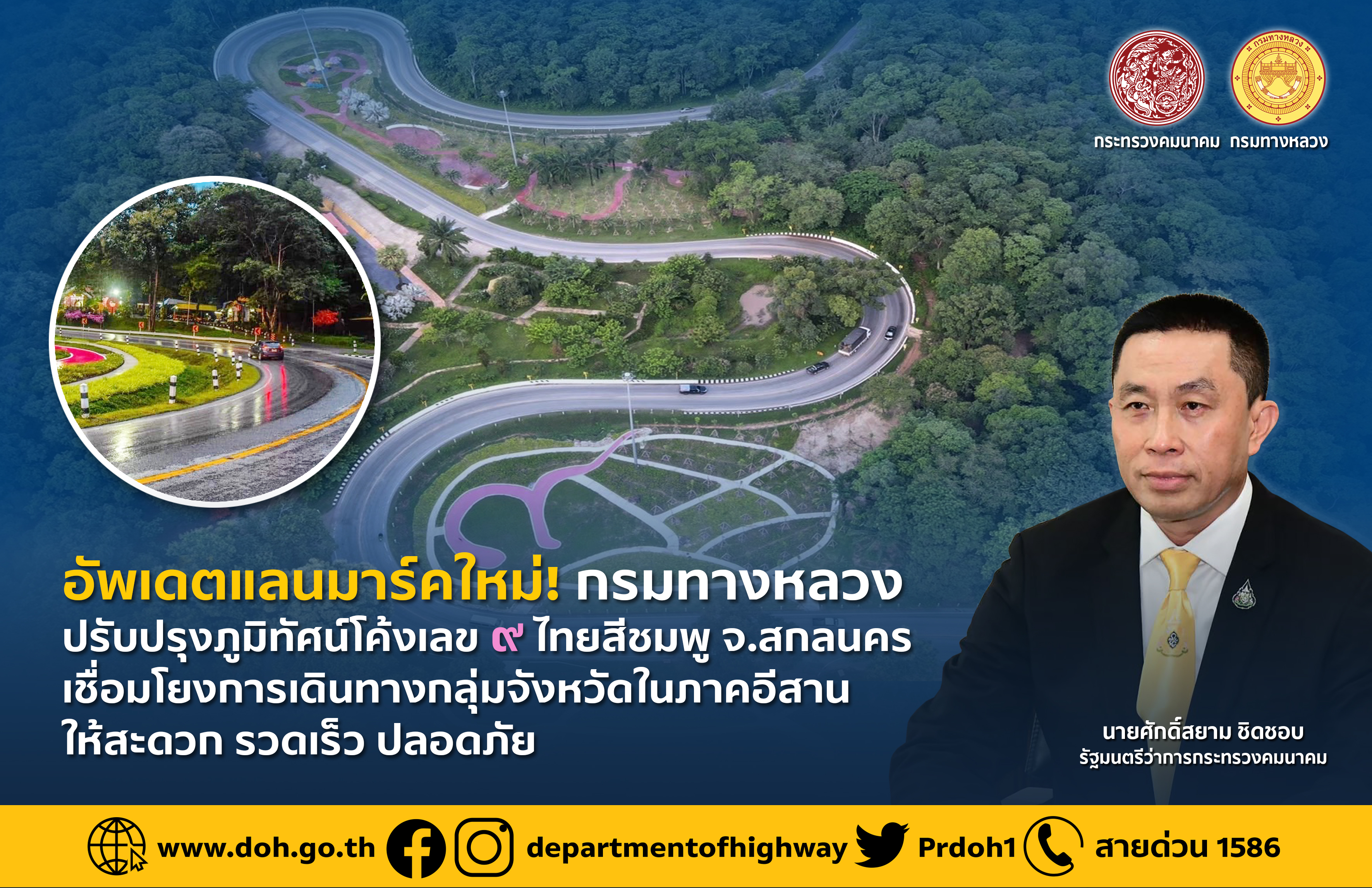 อัพเดตแลนมาร์คใหม่ ! กรมทางหลวงปรับปรุงภูมิทัศน์โค้งเลข 9 ไทยสีชมพู จ.สกลนคร เชื่อมโยงการเดินทางกลุ่มจังหวัดในภาคอีสาน ให้สะดวก รวดเร็ว และปลอดภัย