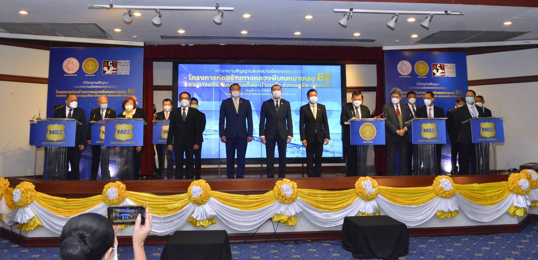 รัฐมนตรีว่าการกระทรวงคมนาคม มอบกรมทางหลวงเซ็นสัญญาก่อสร้างงานโยธา ยกระดับการคมนาคมขนส่ง เดินหน้าก่อสร้างมอเตอร์เวย์สาย 82 ทางยกระดับบางขุนเทียน - บ้านแพ้ว ช่วงเอกชัย - บ้านแพ้ว
