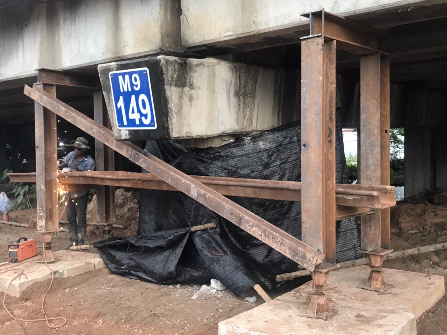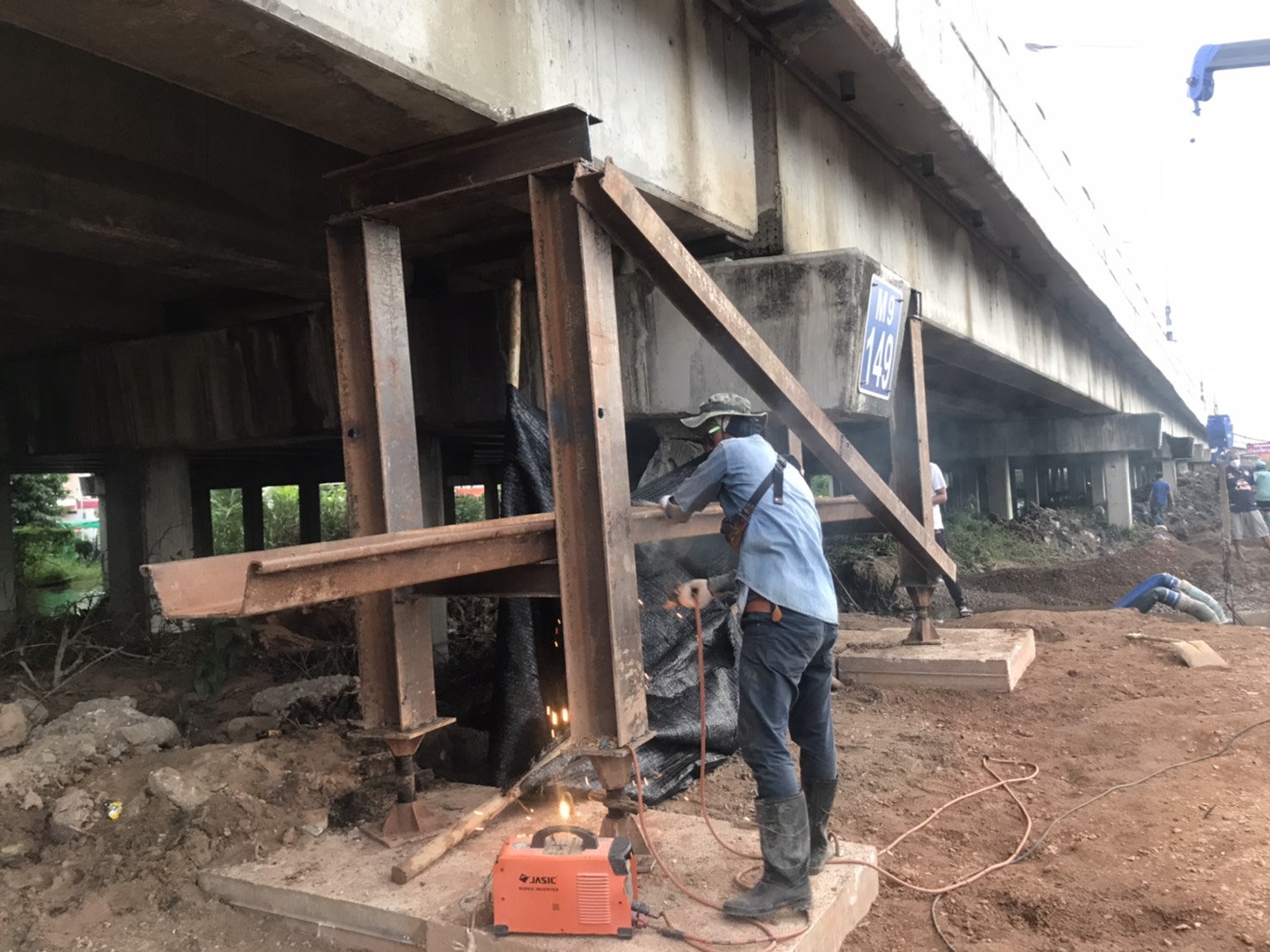 หลังจากนั้นดำเนินการเสริมเสถียรภาพทางด้านวิศวกรรมของโครงสร้างชั้นดิน ตามแนวของสะพานไปยังท่อระบายน้ำโดยรอบของโครงการ ,ติดตั้งระบบโครงสร้างระบบรับน้ำหนักสะพานชั่วคราว (Temporary Support) และทำการเสริมโครงสร้างความมั่นคงของทางยกระดับ โดยแบ่งเป็น 2 ระยะ