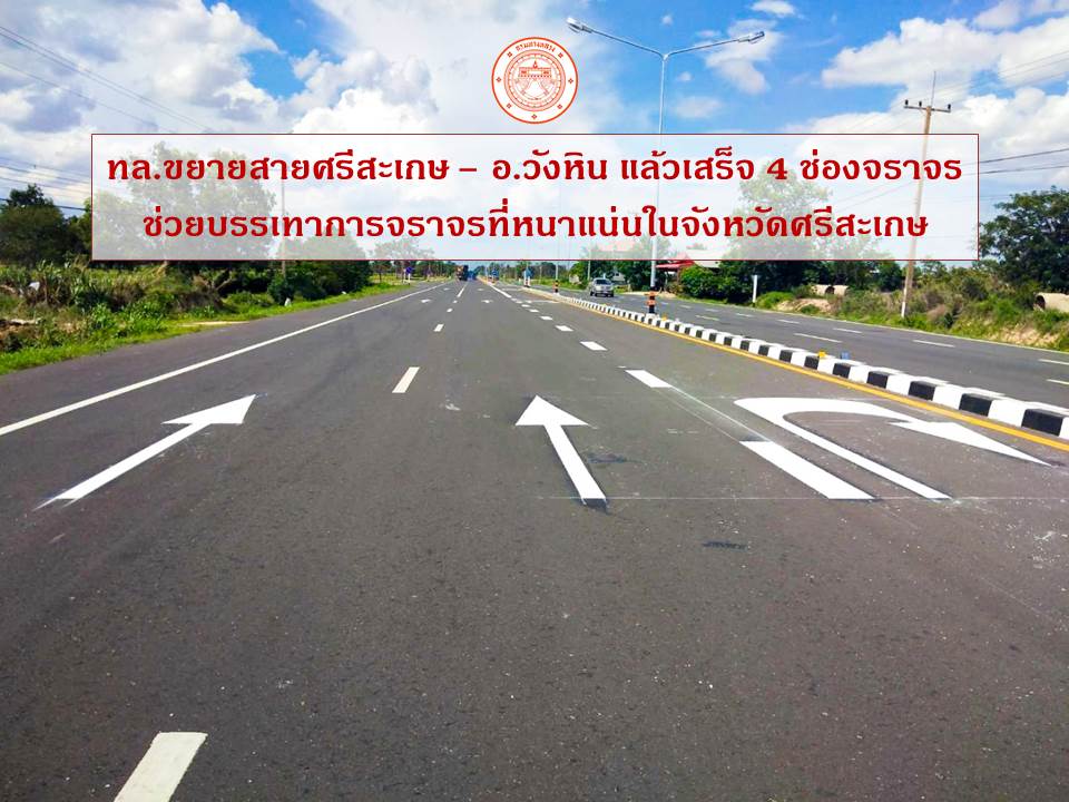 กรมทางหลวง โดยสำนักก่อสร้างทางที่ 2 ดำเนินโครงการก่อสร้างขยายทางหลวงหมายเลข 220 สาย ศรีสะเกษ – อ.วังหิน แล้วเสร็จ ระยะทางยาวประมาณ 19 กิโลเมตร ระหว่าง กม.2 – กม.22 ซึ่งเป็นเส้นทางจากอำเภอเมืองศรีสะเกษ ไปสู่อำเภอขุขันธ์ จังหวัดศรีสะเกษ สามารถช่วยบรรเทาการจราจรที่หนาแน่นในช่วงดังกล่าว ทั้งยังเป็นเส้นทางที่เชื่อมต่อไปยังทางหลวงหมายเลข 24 (สายโคราช – อุบลราชธานี) เพื่อรองรับการพัฒนาระบบการคมนาคม ซึ่งสนองตอบต่อยุทธศาสตร์การพัฒนาจังหวัด แต่เดิมสายทางนี้มีขนาด 2 ช่องจราจร ปริมาณการจราจรที่ค่อนข้างหนาแน่นขึ้น ด้วยช่องทางจราจรที่คับแคบนี้ อาจมีความเสี่ยงต่อการเกิดอุบัติเหตุ จึงได้ดำเนินการก่อสร้างขยายให้มีขนาด 4 ช่องจราจร