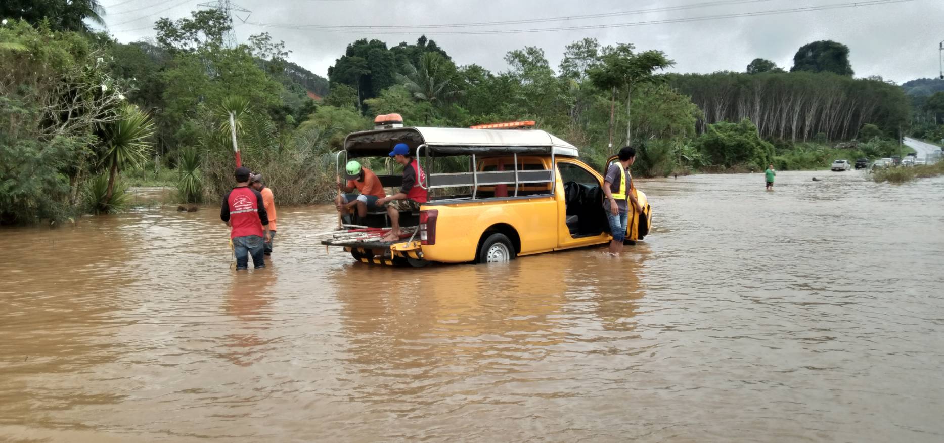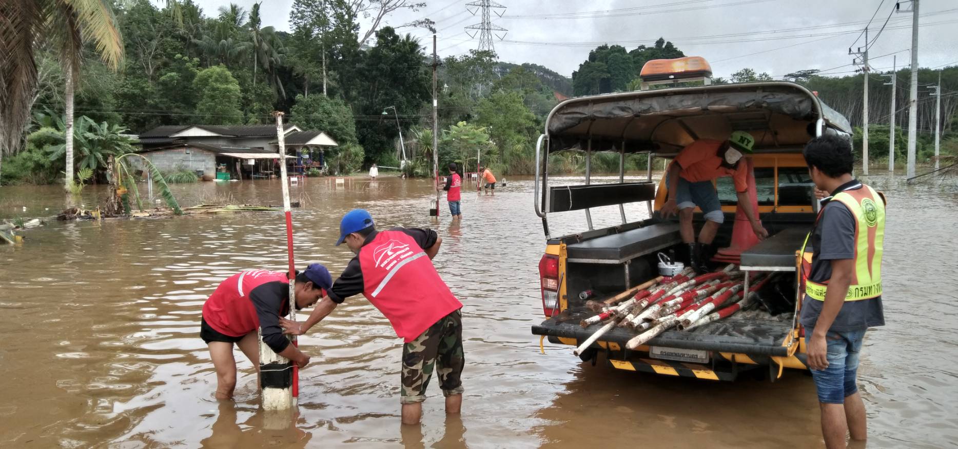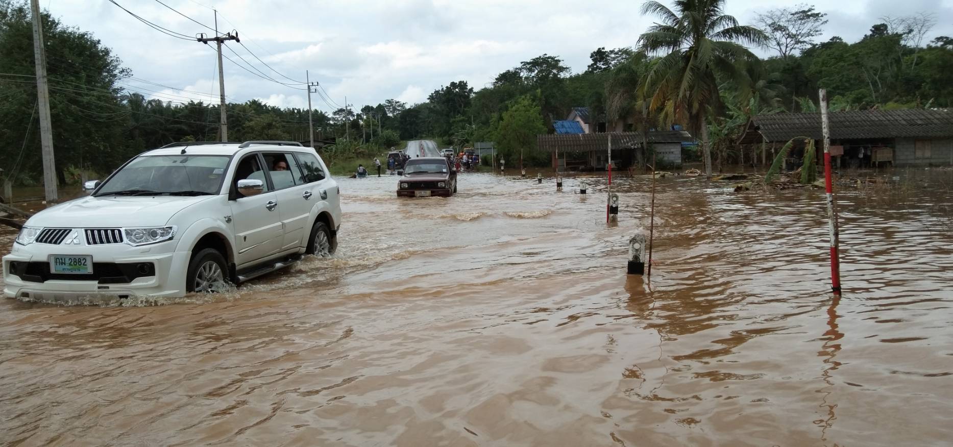 - ทางหลวงหมายเลข 4269 คลองมวน – คลองโกง พื้นที่อำเภอรัษฎา ช่วง กม.ที่ 16 – 21 ระดับน้ำสูง 30 ซม.