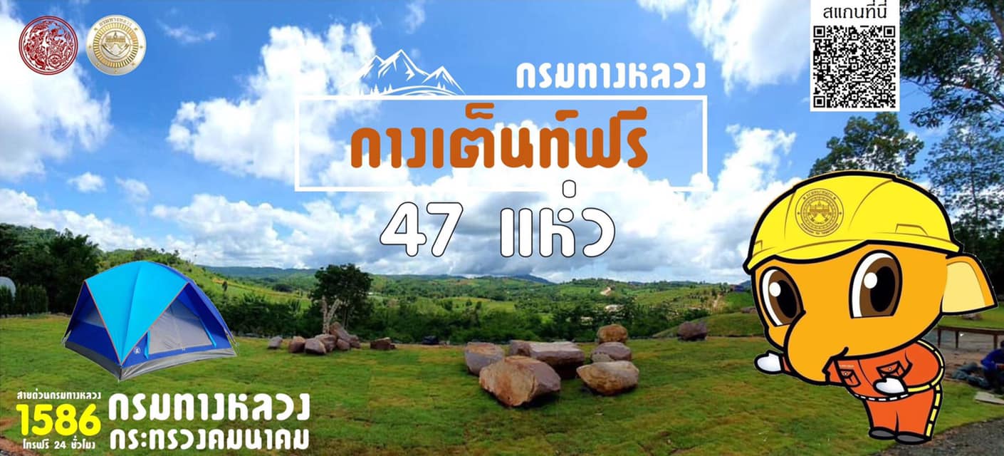 พักฟรี! กรมทางหลวง เปิดจุดบริการกางเต็นท์ 47 แห่ง ทั่วประเทศ เพื่อรองรับนักท่องเที่ยวในช่วงเทศกาลปีใหม่ 2564 สำรองที่พักโทร 1586