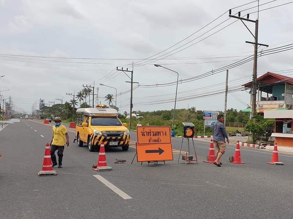 ทางหลวงหมายเลข 42 ดอนยาง – บ้านดี อำเมืองปัตตานี ช่วงกม.ที่ 103+200 – 103+600 ระดับน้ำสูง 40 – 50 ซม.