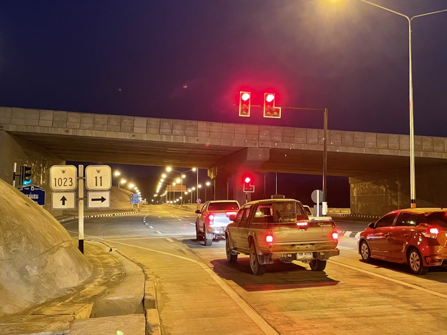 - โครงการก่อสร้างทางหลวงหมายเลข 1023 ระหว่าง กม.55+900 – 57+612.500 ระยะทาง 1.7 กิโลเมตร โดยออกแบบให้เป็นทางลอดใต้สะพานทางหลวงหมายเลข 11 ก่อสร้างตามมาตรฐานทางชั้นพิเศษ 4 ช่องจราจร ผิวทางแบบปอร์ตแลนด์ซีเมนต์คอนกรีต กว้างช่องละ 3.50 เมตร ไหล่ทางกว้างข้างละ 1.50 เมตร มีเกาะกลางแบบคอนกรีตแบริเออร์ และทางขนาน (Service Road) ติดตั้งไฟฟ้าแสงสว่างตลอดเส้นทาง