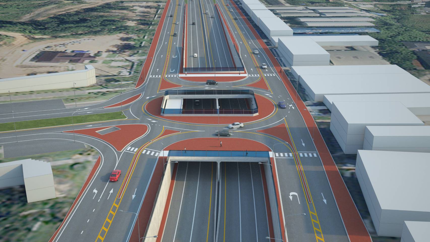 สำหรับการเชื่อมต่อระหว่างทางเข้าหน้ามหาวิทยาลัยและชุมชนฝั่งตรงข้ามจะใช้วงเวียนในการเปลี่ยนทิศทางการจราจร เพื่อระบายรถเข้าสู่ถนนคู่ขนาน โดยออกแบบวงเวียนขนาด 1 ช่องจราจร กว้าง 4 เมตร ไหล่ทางด้านในกว้าง 1 เมตร ไหล่ทางด้านนอกกว้าง 2 เมตร รวมความกว้าง 7 เมตร พร้อมทั้งปรับปรุงทางคู่ขนานทั้ง 2 ฝั่งตลอดแนวทางลอดให้รถสามารถวิ่งสวนทางกันได้ และเมื่อนำมาเชื่อมต่อกับระบบวงเวียนจึงทำให้การจราจรทั้งสองฝั่งสามารถเดินทางถึงกันได้อย่างปลอดภัย งบประมาณก่อสร้าง 420 ล้านบาท ปัจจุบันโครงการดังกล่าวอยู่ในระหว่างการเสนอของบประมาณก่อสร้างปีงบประมาณ พ.ศ.2565 หากได้รับการจัดสรรงบประมาณ คาดว่าจะเริ่มก่อสร้างได้ประมาณต้นปี พ.ศ. 2565