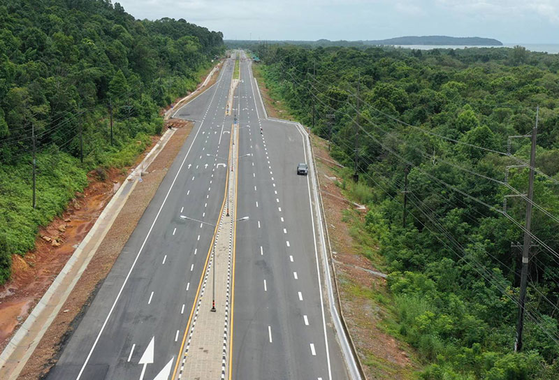 กรมทางหลวง รับมอบนโยบายดังกล่าว โดยสำนักก่อสร้างทางที่ 2 เร่งดำเนินโครงการก่อสร้างทางหลวงหมายเลข 3 (ถนนสุขุมวิท) สาย ตราด - หาดเล็ก ตอนทางแยกเข้า ต.ไม้รูด - บ.คลองจาก จุดเริ่มต้นโครงการ กม.454+390 (กม.เก่า กม.55+300) – กม.477+840 (กม.เก่า กม.78+750 ) ระยะทางประมาณ 23.450 กิโลเมตร ซึ่งผ่านพื้นที่อำเภอเมืองตราด และอำเภอคลองใหญ่ จังหวัดตราด ก่อสร้างเป็นมาตรฐานทางชั้นพิเศษ 4 ช่องจราจร ผิวทาง Asphalt Concrete Surface กว้างช่องละ 3.50 เมตร ไหล่ทางด้านนอกกว้าง 2.50 เมตร รวมงานก่อสร้างสะพานคอนกรีตอีก 7 แห่ง และก่อสร้างศาลาทางหลวงในบริเวณสองข้างทางเพื่ออำนวยความสะดวกให้กับประชาชนจำนวน 11 แห่ง พร้อมติดตั้งไฟฟ้าแสงสว่างตลอดเส้นทาง งบประมาณ 985,471,490 บาท ปัจจุบันการก่อสร้างคืบหน้าประมาณ 85% คาดว่าจะก่อสร้างจะแล้วเสร็จประมาณเดือน พฤศจิกายน 2564 นี้