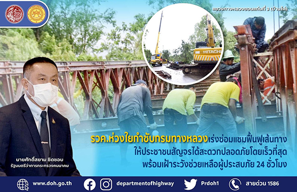 รัฐมนตรีว่าการกระทรวงคมนาคมห่วงใยกำชับกรมทางหลวงเร่งซ่อมแซมฟื้นฟูเส้นทางให้ประชาชนสัญจรได้สะดวกปลอดภัยโดยเร็วที่สุดพร้อมเฝ้าระวังช่วยเหลือผู้ประสบภัย 24 ชั่วโมง