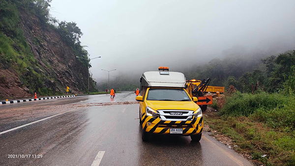 ทั้งนี้ ขอให้ประชาชนผู้ใช้เส้นทางหลวงเดินทางด้วยความระมัดระวังเพื่อความปลอดภัย พร้อมปฏิบัติตามป้ายเตือน ป้ายแนะนำและคำแนะนำของเจ้าหน้าที่อย่างเคร่งครัด และหากประชาชนต้องการสอบถามสภาพเส้นทาง สภาพการจราจร หรือต้องการความช่วยเหลือสามารถติดต่อได้ที่สำนักงานทางหลวง แขวงทางหลวง หมวดทางหลวงในพื้นที่ และสายด่วนกรมทางหลวง 1586 (โทรฟรีทุกเครือข่ายตลอด 24 ชั่วโมง) และสามารถติดตามการรายงานสถานการณ์สภาพเส้นทางได้ที่ทวิตเตอร์กรมทางหลวง @prdoh1