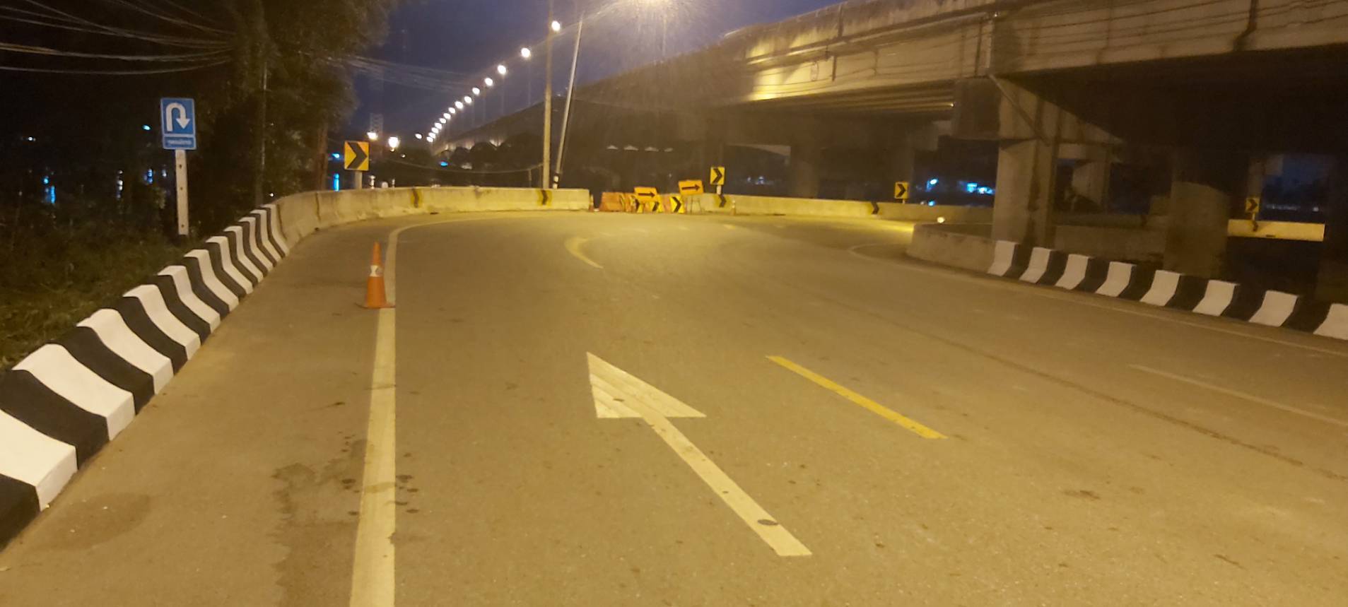 •3.) จุดกลับรถใต้สะพาน กม. 3+100 ออกแบบไว้ให้เป็นทางกลับรถ ขนาด 2 ช่องจราจร (ทิศทางละ 1 ช่องจราจร สวนทางกัน) ขอบทางเป็นแบริเออร์คอนกรีต ตีเส้นแบ่งทิศทางจราจรชัดเจน ติดตั้งไฟฟ้าแสงสว่าง ติดตั้งป้ายแจ้งว่าเป็นจุดกลับรถและป้ายเตือนทางโค้งครบถ้วน สำหรับตรงบริเวณที่เกิดเหตุ เป็นช่องเปิดกว้าง 4.00 เมตร อยู่ตรงทางโค้งกลับรถ วันที่เกิดเหตุ มีไฟฟ้าแสงสว่าง