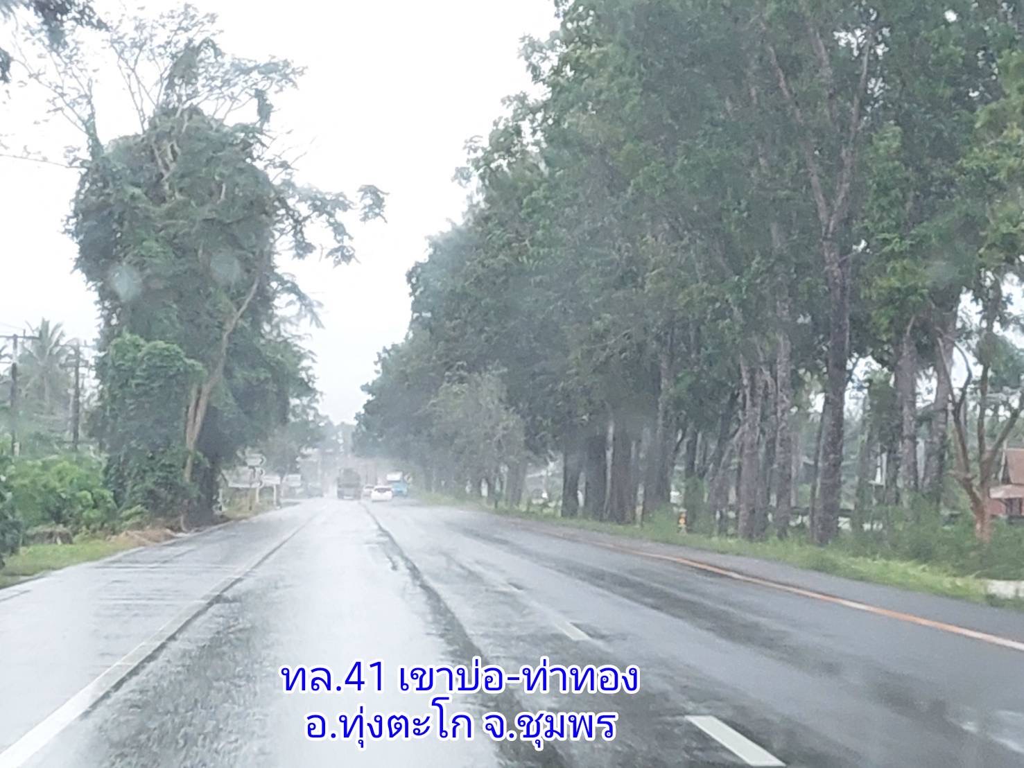 สำหรับการจราจรบนทางหลวงหมายเลข 41 ช่วง เขาบ่อ – ท่าทอง พื้นที่ อ.ทุ่งตะโก จ.ชุมพร ขณะนี้ได้กลับเข้าสู่สภาวะปกติและเปิดให้รถทุกชนิดสัญจรได้ทั้งขาขึ้นและขาล่องเนื่องจากระดับน้ำลดลงแล้ว แต่สภาพอากาศมืดคลึ้มมีฝนตกบางช่วง จึงกำชับให้จัดเจ้าหน้าที่เฝ้าระวังและอำนวยความสะดวกปลอดภัยด้านการจราจรให้กับประชาชนในการเดินทางตามข้อสั่งการของรัฐมนตรีว่าการกระทรวงคมนาคม