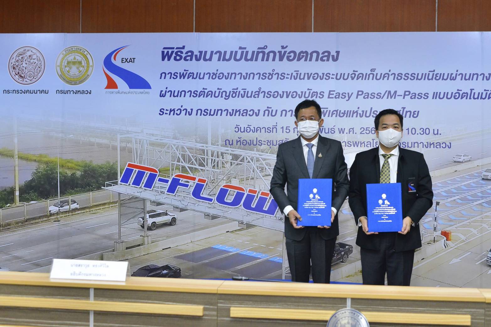 กรมทางหลวงจัดพิธีลงนามบันทึกข้อตกลงว่าด้วยการพัฒนาช่องทางการชำระเงินของระบบจัดเก็บค่าธรรมเนียมผ่านทางอัตโนมัติแบบไม่มีไม้กั้น (M-Flow) ผ่านการตัดบัญชีเงินสำรองของบัตร Easy Pass /