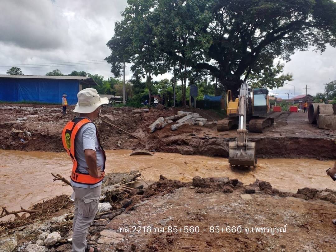นายสราวุธ ทรงศิวิไล อธิบดีกรมทางหลวง เปิดเผยว่า นายศักดิ์สยาม ชิดชอบ รัฐมนตรีว่าการกระทรวงคมนาคมมีความเป็นห่วงใยต่อการเดินทางของประชาชนจึงมอบให้กรมทางหลวงเร่งดำเนินการซ่อมแซมทางเบี่ยงงานก่อสร้างสะพานห้วยน้ำย่าบนทางหลวงหมายเลข 2216 ตอน โคกมน - กกกะทอน ที่ กม.85+560 ต.ศิลา อ.หล่มเก่า จ.เพชรบูรณ์ จากสถานการณ์ฝนตกหนักต่อเนื่องหลายวันประกอบกับน้ำป่าไหลหลากและกระแสน้ำได้กัดเซาะทางเบี่ยงขาดความกว้าง 10 เมตร เมื่อวันที่ 13 กรกฎาคม 2565 ที่ผ่านมา ส่งผลให้ประชาชนผู้ใช้ทางไม่สามารถสัญจรผ่านได้ ซึ่งขณะนี้กรมทางหลวง โดยแขวงทางหลวงเพชรบูรณ์ที่ 1 ได้ดำเนินการนำเครื่องจักรเข้าซ่อมแซมทางเบี่ยงแล้วเสร็จ ในช่วงเช้าของวันนี้ (15 กรกฎาคม 2565) สามารถเปิดการจราจรให้รถขนาดเล็กสามารถผ่านได้ สำหรับรถขนาดใหญ่ขอให้ใช้เส้นทางเลี่ยงทางหลวงชนบท ทช.2012 บ้านตาดกลอย-หนองยาวแทน พร้อมได้สั่งการให้หน่วยในพื้นที่ได้ดำเนินการติดตั้งป้ายเตือน กรวยยางไฟ กระพริบเตือน พร้อมจัดเจ้าหน้าที่อำนวยความสะดวกและประชาสัมพันธ์เพื่ออำนวยความสะดวกปลอดภัยให้กับประชาชนผู้ใช้เส้นทาง