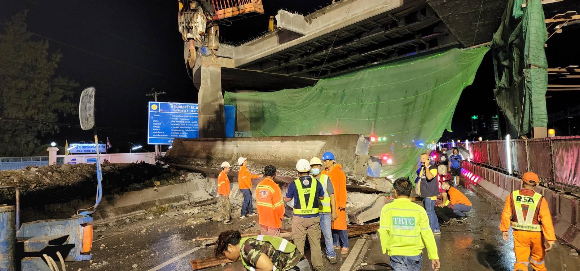จากการลงพื้นที่ พบว่าเหตุเกิดในวันอาทิตย์ที่ 31 กรกฎาคม 2565 เวลาประมาณ 20.00 น. ถนนพระราม 2 ตอน สะพานข้ามแม่น้ำท่าจีน-นาโคก ที่ กม.34 บริเวณโครงการปรับปรุงสะพานกลับรถบริเวณใกล้กับโรงพยาบาลวิภาราม อำเภอเมือง จังหวัดสมุทรสาคร ขณะที่เกิดเหตุเจ้าหน้าที่คุมงาน และคนงาน อยู่ระหว่างการเตรียมความเรียบร้อยพื้นที่เพื่อจะเทพื้นสะพานใหม่ หลังจากที่ได้ทุบพื้นสะพานช่วงที่ชำรุดเสียหายออกแล้ว ทันใดนั้นคานสะพานลอยตัวริมสุดได้ร่วงหล่นลงมาทับรถยนต์ที่สัญจรบนถนนพระราม 2 เป็นเหตุให้มีรถได้รับความเสียหายจำนวน 3 คัน มีผู้เสียชีวิต 2 ราย และมีผู้ได้รับบาดเจ็บ 2 ราย (ประชาชนในรถเกิดเหตุ เสียชีวิต 1 ราย บาดเจ็บ 1 ราย และเจ้าหน้าที่กรมทางหลวง เสียชีวิต 1 ราย บาดเจ็บ 1 ราย) ซึ่งได้ประสานให้เจ้าหน้าที่กู้ภัยนำส่งโรงพยาบาลแล้ว ทั้งนี้ได้ปิดช่องจราจรช่องทางหลัก (ขาเข้า) โดยให้วิ่งทางคู่ขนานแทน เพื่ออำนวยความสะดวกให้กับผู้ใช้ทาง