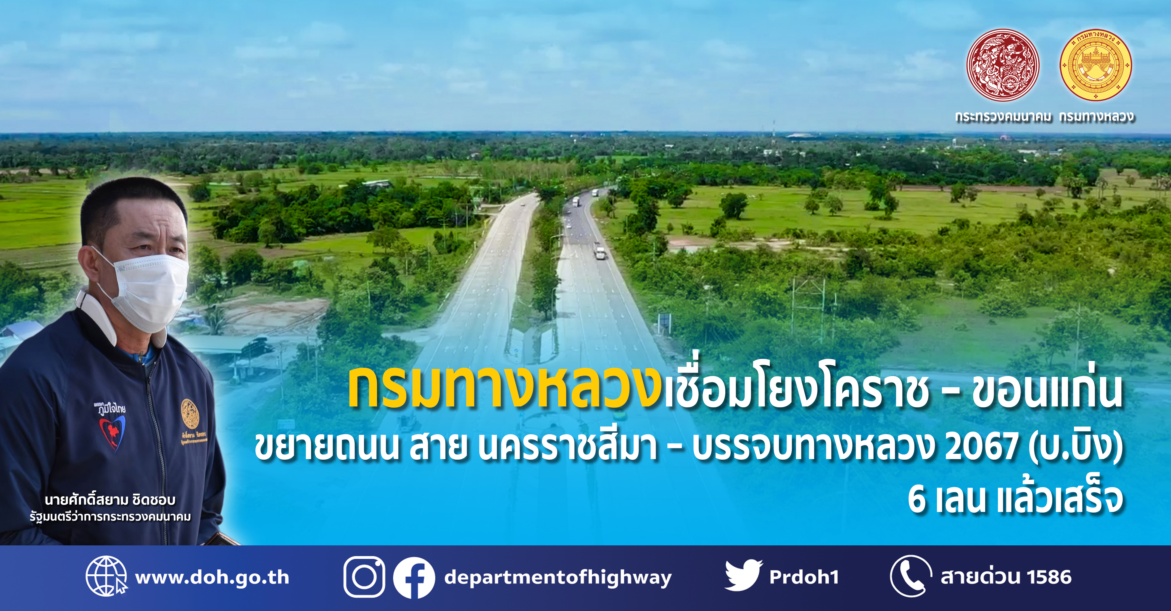 กรมทางหลวงเชื่อมโยงโคราช – ขอนแก่น ขยายถนนสาย นครราชสีมา – บรรจบทางหลวง 2067 (บ.บิง) 6 เลน แล้วเสร็จ