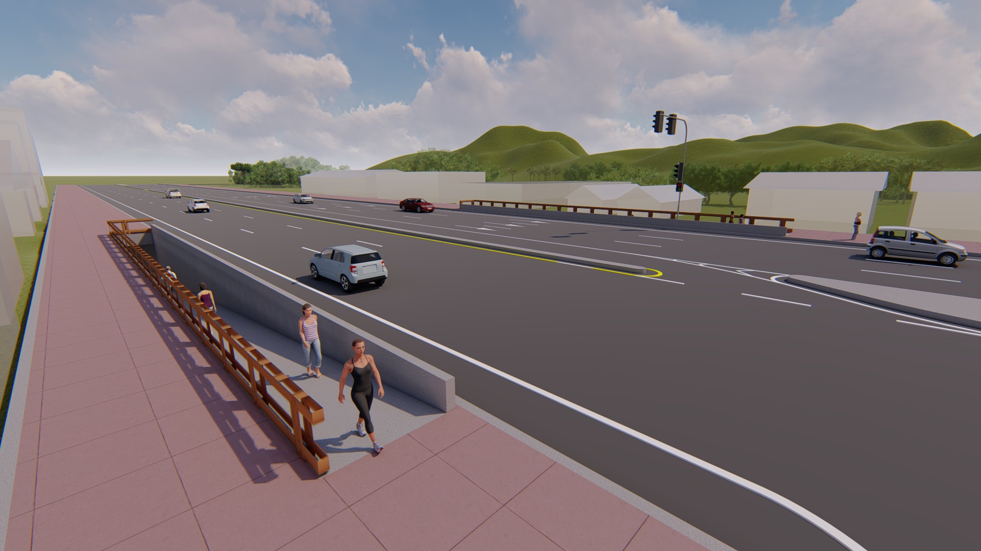1????รูปแบบที่ 1 ช่วง กม.796+000.000 - กม.798+100 ดำเนินการออกแบบปรับปรุงทางหลวงขนาด 6 ช่องจราจร (ไป-กลับทิศทางละ 3 ช่องจราจร) กว้างช่องละ 3.50 เมตร มีเกาะกลางแบบยกปูด้วยแผ่นคอนกรีตเพื่อแบ่งแยกทิศทางการจราจรและจัดระบบการจราจรท้องถิ่นให้สมบูรณ์และปลอดภัย