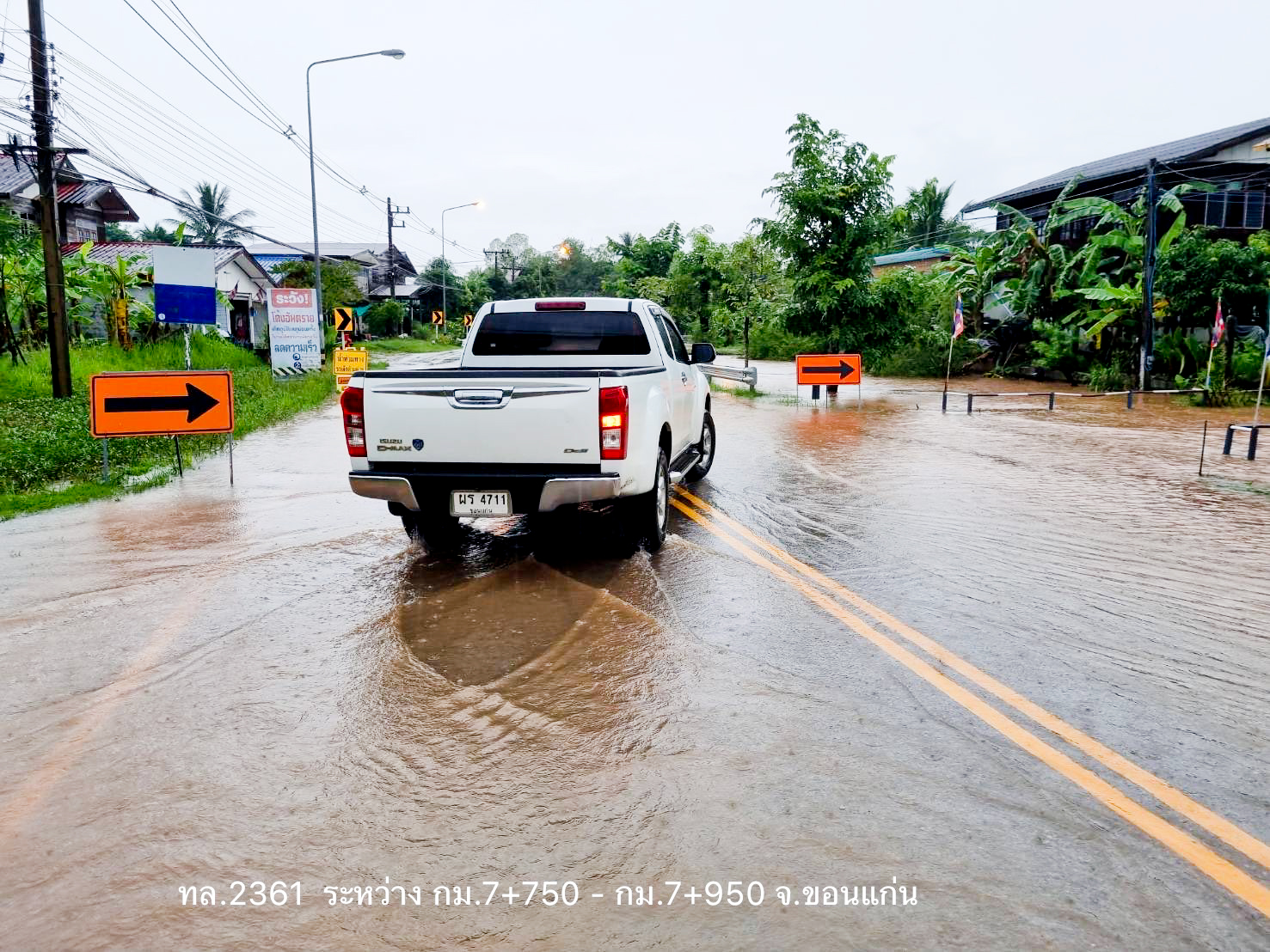 - ทางหลวงหมายเลข 2170 ตอน วัดประทุมชาติ – หนองจาน ในพื้นที่ อ.จตุรัส ช่วง กม.ที่3+125 – กม.4+100 ระดับน้ำ 40 ซม. รถเล็กผ่านไม่ได้