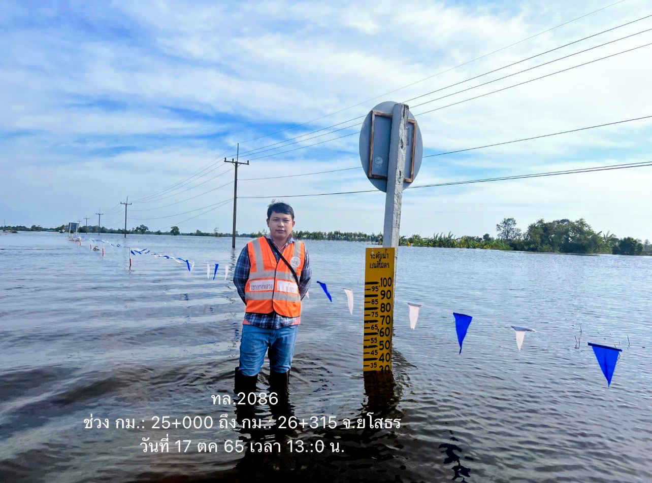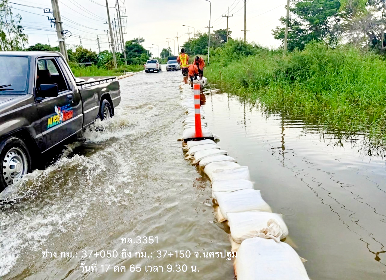 นายสราวุธ ทรงศิวิไล อธิบดีกรมทางหลวง เปิดเผยว่า จากสถานการณ์น้ำท่วมในหลายพื้นที่ ส่งผลให้ทางหลวงบางเส้นทางมีน้ำท่วมสูงเป็นเหตุให้ไม่สามารถใช้สัญจรได้ตามปกติ กรมทางหลวงได้สั่งการให้ สำนักงานทางหลวง แขวงทางหลวง หมวดทางหลวงทั่วประเทศ เฝ้าระวัง และติดตามสถานการณ์อย่างใกล้ชิด หากพื้นที่ใดประสบปัญหาก็จะระดมบุคลากร นำเครื่องจักรและวัสดุอุปกรณ์เข้าให้การช่วยเหลือเพื่อเร่งระบายน้ำและบรรเทาความเดือดร้อนโดยเร็วที่สุด พร้อมกำชับให้ผู้บริหารในพื้นที่ติดตามสถานการณ์อย่างใกล้ชิด นอกจากนี้ยังติดตั้งป้ายเตือนและอุปกรณ์อำนวยความปลอดภัยแก่ผู้ใช้เส้นทาง ในขณะที่บางจังหวัดก็มีการล้างทำความสะอาดถนนหลังจากน้ำลดลงบ้างแล้ว เพื่อบรรเทาความเดือดร้อนของประชาชนให้ได้รับความสะดวกปลอดภัยในการสัญจรโดยเร็วที่สุดอย่างต่อเนื่อง ตามข้อสั่งการของ นายศักดิ์สยาม ชิดชอบ รัฐมนตรีว่าการกระทรวงคมนาคม ที่มีความห่วงใยประชาชนผู้ประสบภัยในครั้งนี้ พร้อมทั้งเฝ้าระวังตลอด 24 ชั่วโมง เพื่อช่วยประชาชนอย่างทันท่วงที พร้อมกันนี้กรมทางหลวง ได้ทำการสรุปสถานการณ์อุทกภัยและดินสไลด์บนทางหลวง โดย สถานการณ์ประจำวันที่ 17 ตุลาคม 2565 เวลา 12.30 น. พบทางหลวงถูกน้ำท่วม/ดินสไลด์ ในพื้นที่ 12 จังหวัด ได้แก่ จ.ขอนแก่น, จ.ศรีสะเกษ, จ.นครราชสีมา ,จ.หนองบัวลำภู , จ.อุบลราชธานี, จ.มหาสารคาม, จ.ยโสธร, จ.นครปฐม, จ.อ่างทอง, จ.พระนครศรีอยุธยา, จ.สิงห์บุรี และ จ.นครสวรรค์ จำนวน 28 สายทาง 38 แห่ง การจราจรผ่านไม่ได้ 27 แห่ง ดังนี้