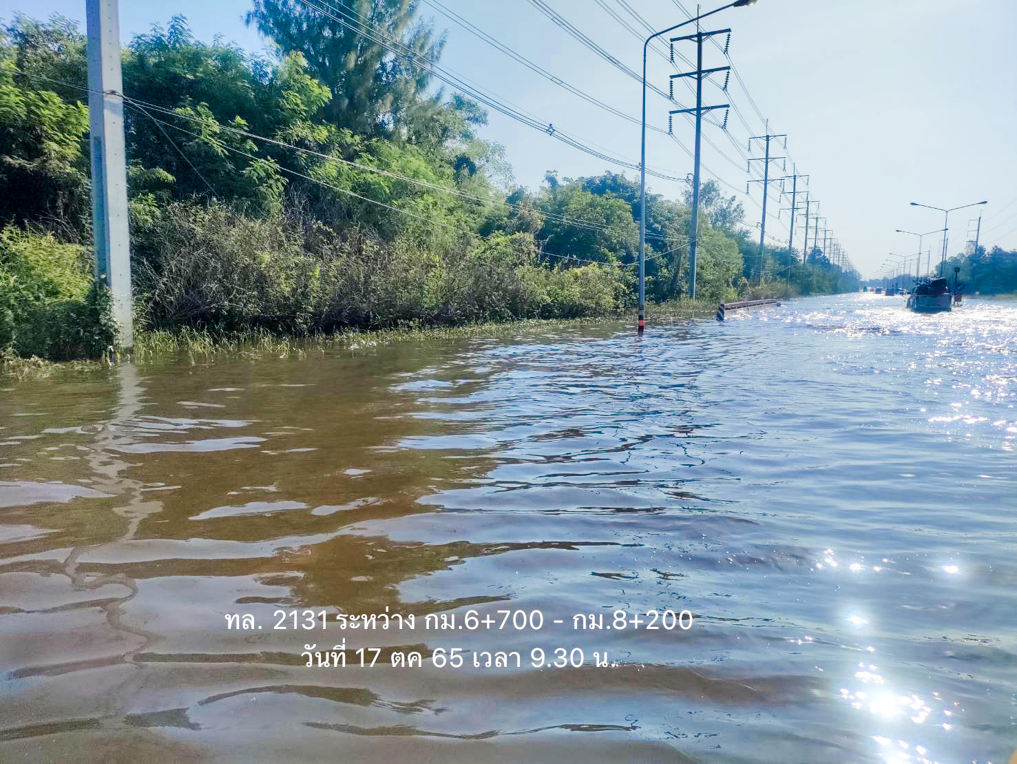 -ทางหลวงหมายเลข 2086 ตอน บ้านด่าน - เมืองน้อย ในพื้นที่ อ.ราษีไศล ช่วง กม.ที่ 37+000 - 39+500 ระดับน้ำ 50 ซม. การจราจรไม่สามารถผ่านได้