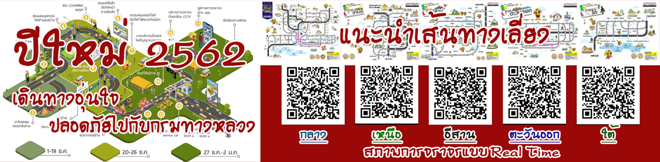 กรมทางหลวงแนะนำเส้นทางเลี่ยงช่วงเทศกาลปีใหม่ 2562 และสามารถติดตามสภาพจราจร Online แบบ Real Time ของกรมทางหลวงได้ผ่านทางQR code หรือทางลิ้งค์ด้านล่างนี้