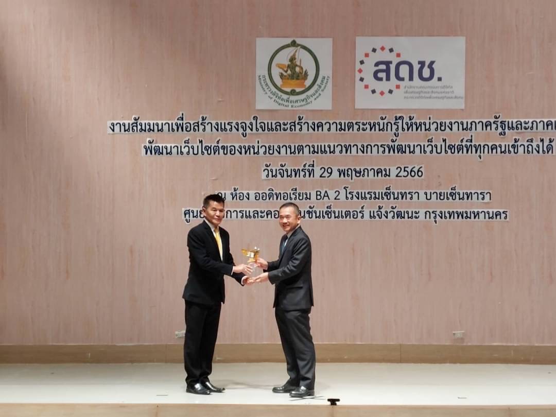 วันนี้ (29 พ.ค. 66) นายเด่นชัย เอี่ยมสุวรรณ ผู้อำนวยการศูนย์เทคโนโลยีสารสนเทศ เป็นผู้แทนกรมทางหลวง ร่วมงาน "สัมมนาเพื่อสร้างแรงจูงใจและสร้างความตระหนักรู้ให้หน่วยงานภาครัฐและภาคเอกชน พัฒนาเว็บไซต์ของหน่วยงานตามแนวทางการพัฒนาเว็บไซต์ที่ทุกคนเข้าถึงได้" และรับรางวัลหน่วยงานที่พัฒนาเว็บไซต์ที่ทุกคนเข้าถึงได้ตามมาตรฐาน Web Content Accessibility Guidelines (WCAG) จากสำนักงานคณะกรรมการดิจิทัลเพื่อเศรษฐกิจและสังคมแห่งชาติ โดยมี ศ.พิเศษ วิศิษฏ์ วิศิษฏ์สรอรรถ ปลัดกระทรวงดิจิทัลเพื่อเศรษฐกิจและสังคมแห่งชาติ เป็นประธานในพิธี ณ ห้อง ออดิทอเรียม BA 2 โรงแรมเซ็นทรา บายเซ็นทารา ศูนย์ราชการและคอนเวนซันเซ็นเตอร์ แจ้งวัฒนะ กรุงเทพฯ