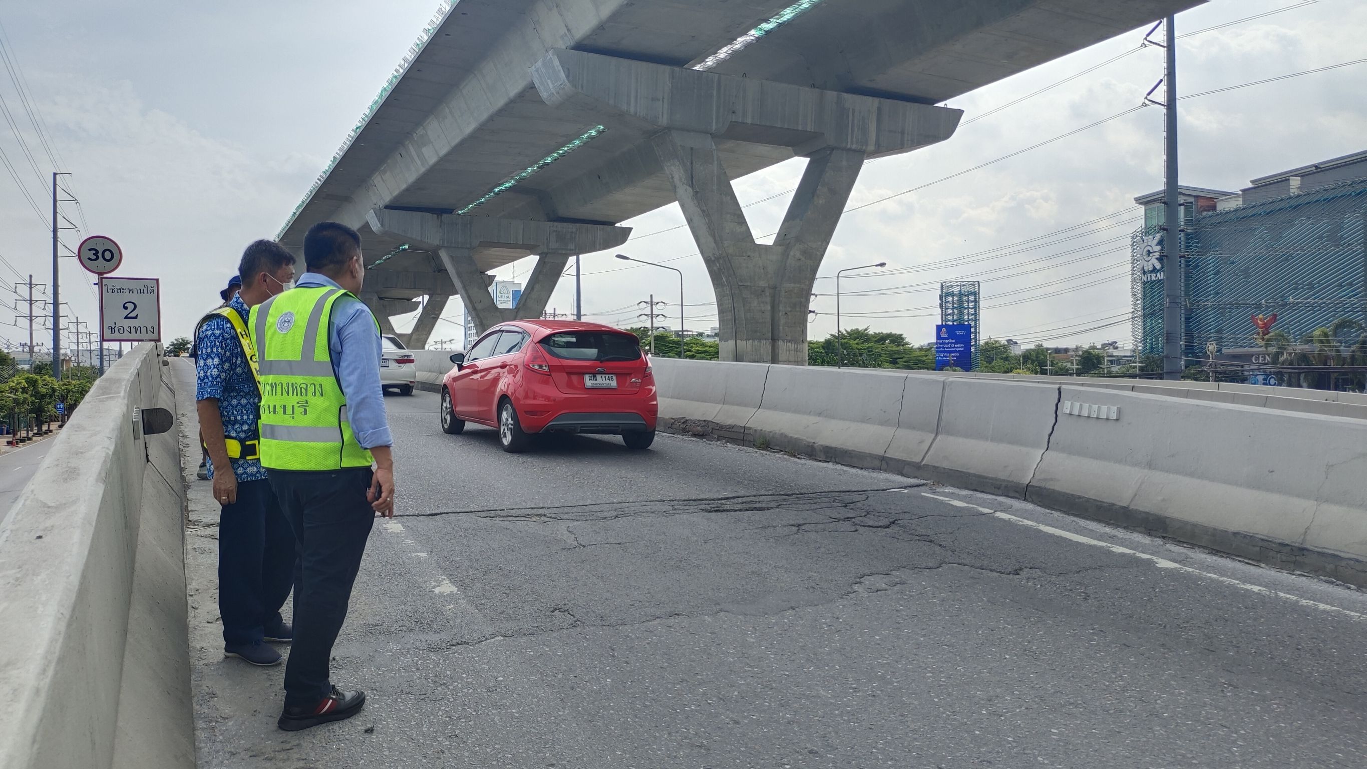กรมทางหลวงเร่งดำเนินการตรวจสอบและขอเรียนชี้แจงว่า บริเวณที่เกิดเหตุอยู่บนทางหลวงหมายเลข 35 (ถนนพระรามที่ 2) กม.6+188 เขตบางขุนเทียน จังหวัดกรุงเทพมหานคร จากการตรวจสอบและประเมินสภาพการทรุดตัว พบว่า สาเหตุเกิดจากการทรุดตัวที่ไม่เท่ากันของโครงสร้างที่ช่วยในการปรับการทรุดตัวบริเวณคอสะพาน (Bearing Unit) และคันทาง ทำให้เกิดความไม่สม่ำเสมอของผิวจราจรและเกิดรอยแยกบริเวณรอยต่อราวกันชนของสะพาน โดยไม่ส่งผลให้เกิดความเสียหายแบบพังทลายของโครงสร้างสะพานแบบทันทีทันใด ซึ่งทีมผู้เชี่ยวชาญงานสะพานของกรมทางหลวงอยู่ในพื้นที่เพื่อตรวจสอบในรายละเอียดสำหรับการซ่อมแซมทั้งในระยะสั้นและระยะยาวโดยด่วนต่อไป