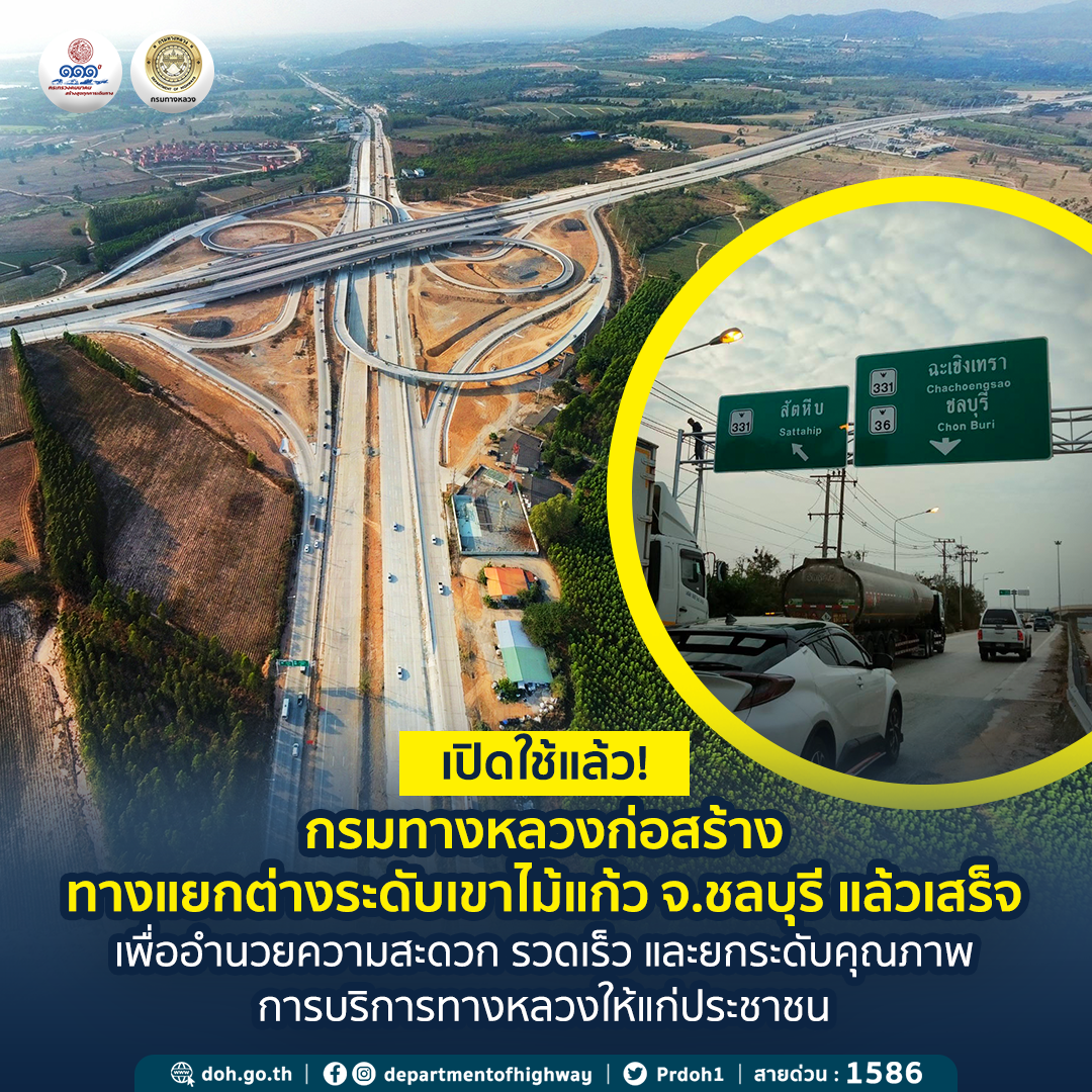 นายสราวุธ ทรงศิวิไล อธิบดีกรมทางหลวง เปิดเผยว่า กรมทางหลวง โดยสำนักก่อสร้างสะพาน ได้ดำเนินโครงการก่อสร้างปรับปรุงทางแยกต่างระดับเขาไม้แก้ว จ.ชลบุรี เพื่ออำนวยความสะดวกและความปลอดภัยให้แก่ประชาชน รองรับปริมาณการจราจรและการขยายตัวภาคอุตสาหกรรมในพื้นที่เขตเศรษฐกิจพิเศษ ตามยุทธศาสตร์การพัฒนาโครงสร้างพื้นฐานด้านคมนาคมขนส่งของประเทศ ทางแยกจุดตัดเขาไม้แก้วหรือทางแยกจุดตัดระหว่างทางหลวงหมายเลข 36 และทางหลวงหมายเลข 331 ในพื้นที่ จ.ชลบุรีเป็นเส้นทางที่มีความสำคัญในการเชื่อมโยงการคมนาคมและการขนส่งระหว่างพื้นที่ภาคตะวันออก ไปสู่จังหวัดและภูมิภาคใกล้เคียง รองรับปริมาณการจราจรจากการขยายตัวทางเศรษฐกิจและภาคอุตสาหกรรมของประเทศ ส่งผลให้บริเวณทางแยกดังกล่าวมีปริมาณการจราจรหนาแน่นประชาชนไม่ได้รับความสะดวกในการเดินทาง
